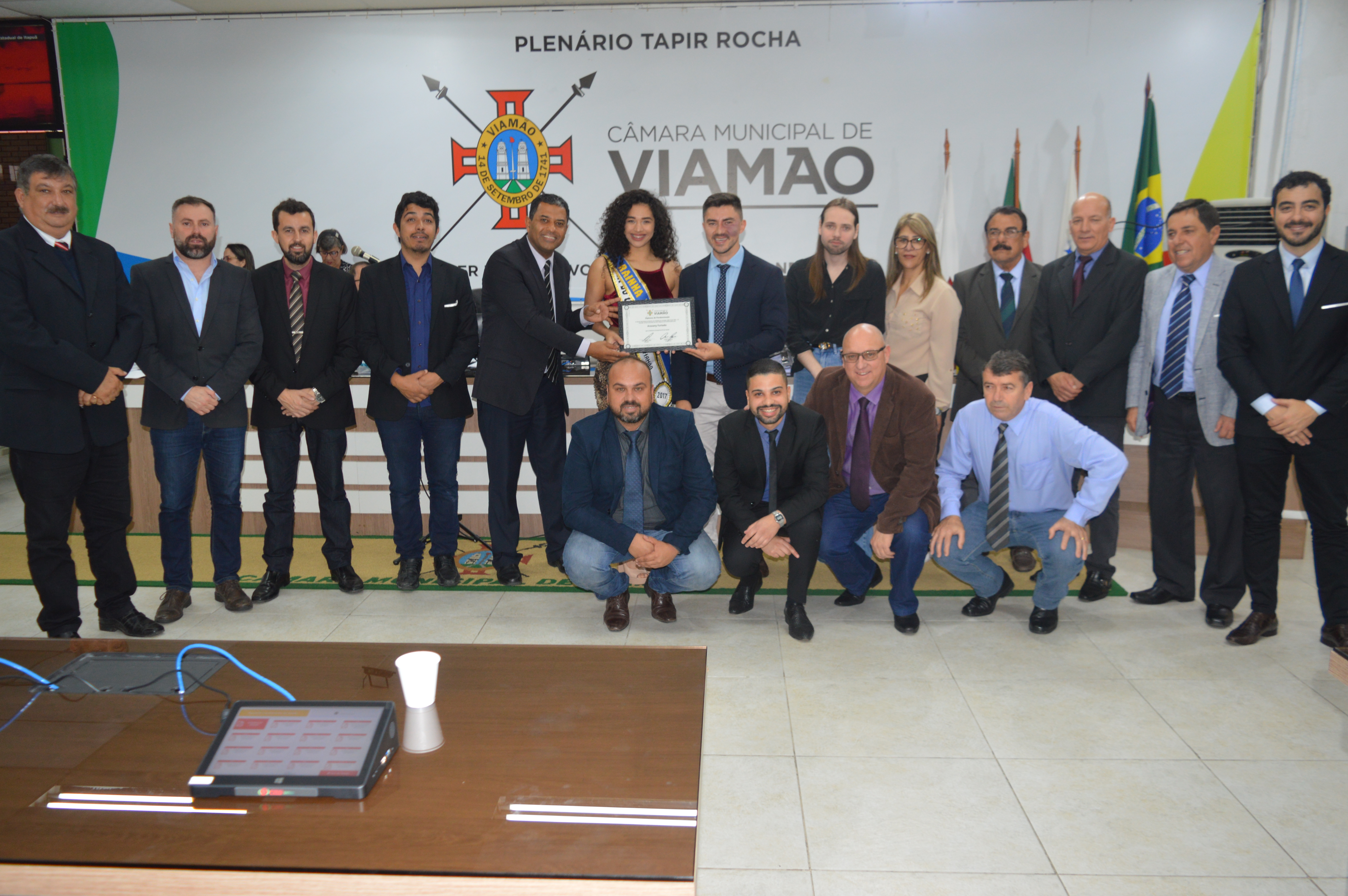 O vereador Adão Pretto – PT entregou certificado de parabenização à Rainha do Carnaval de Viamão em 2018, Cássia Araxany Furtado da Costa, na sessão de ontem (10), na Câmara Municipal de Viamão – CMV.