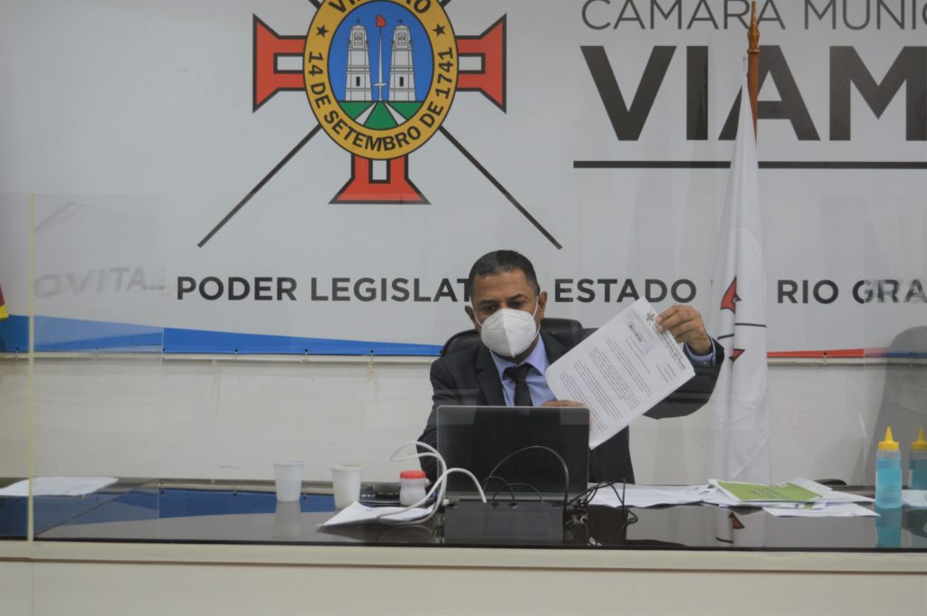 Foi aprovado por unanimidade na Câmara Municipal de Viamão – CMV, o projeto de lei 026/2021, que autoriza o Poder Executivo a remunerar médicos por necessidade temporária de excepcional interesse público, em caráter emergencial, por prazo determinado (com validade por 180 dias, podendo haver prorrogação por mais 90 dias conforme o interesse do Poder Executivo e de acordo com a lei federal 6019/1970). O prefeito de Viamão, Valdir Bonatto – PSDB, participou da sessão plenária desta terça-feira (23), conduzida pelo presidente da CMV, Armando Azambuja – PSDB, e defendeu a proposição.