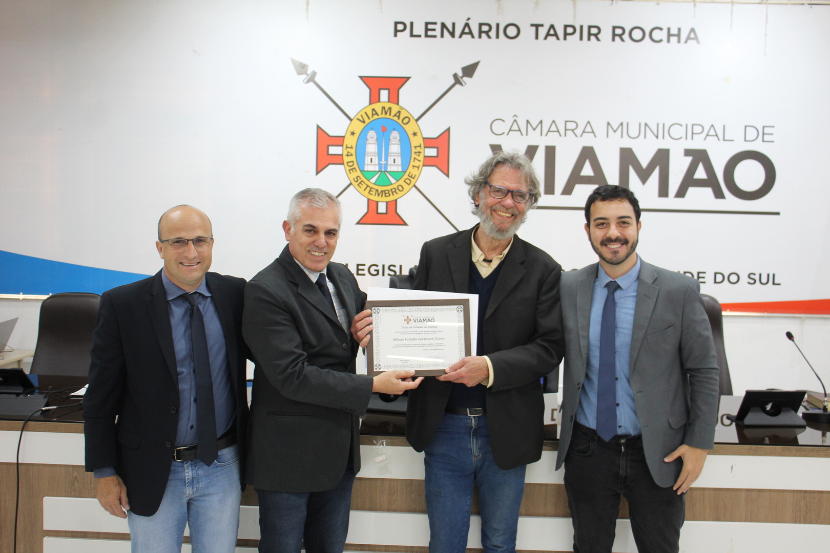 A Câmara Municipal de Viamão – CMV concedeu título de cidadão viamonense para o artista plástico, pintor, gravurista e desenhista Wilson Furtado Cavalcanti, conhecido como Cava, natural de Pelotas/RS. A honraria foi conferida por iniciativa do vereador Alex Boscaini – PT, na sessão plenária de quinta-feira (26), mediante o decreto legislativo nº 04/2023, promulgado pelo presidente André Gutierres – Progressistas.