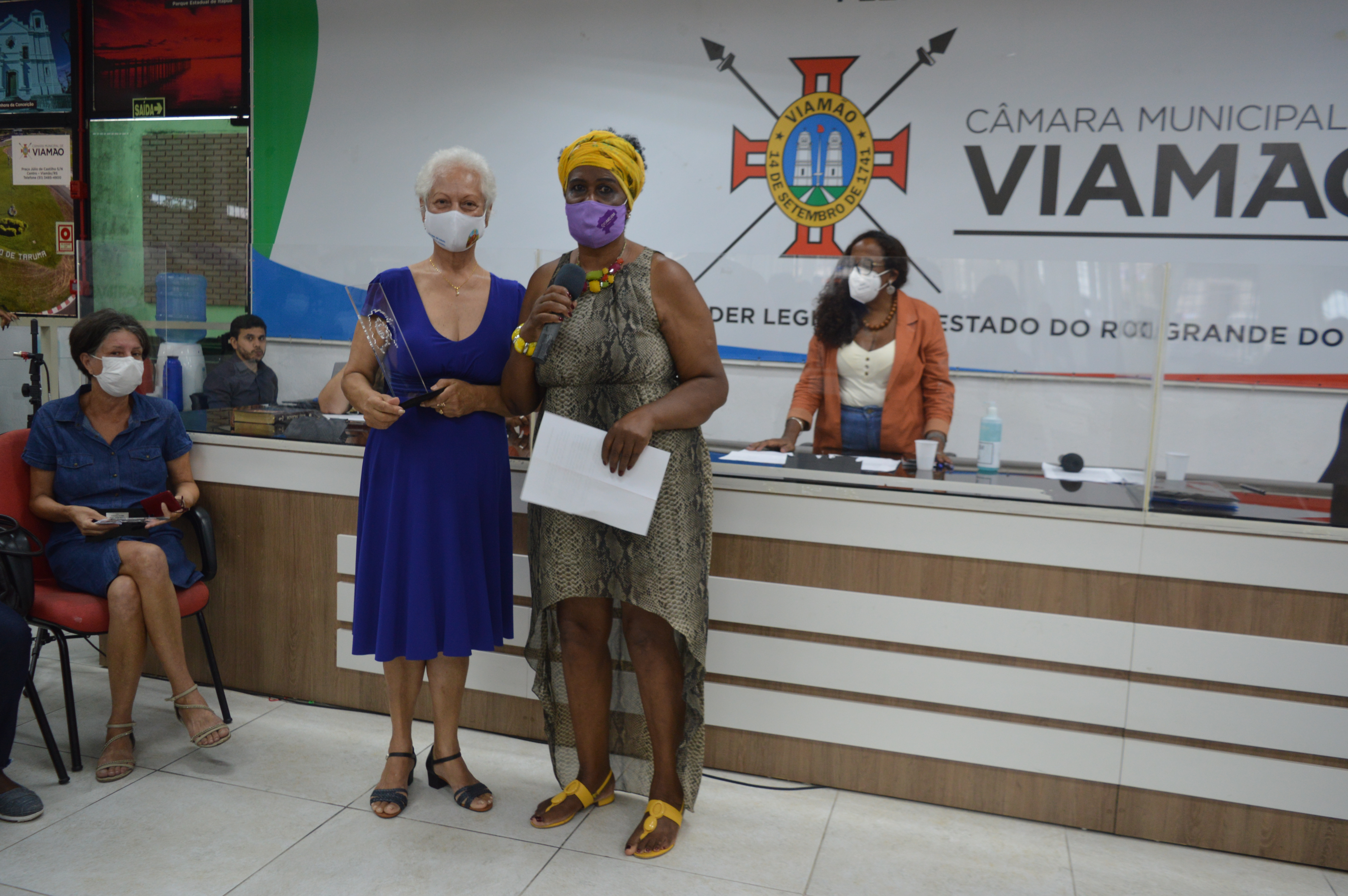 A lei municipal 5041/2021, que instituiu a referida premiação, é de autoria da vereadora Fátima Maria – PT (Mandato Coletivo Teremos Vez), que compôs a Mesa Diretora da sessão especial, juntamente às vereadoras Denise Guedes – PSDB e Eda Regina – PDT, e à deputada federal Maria do Rosário - PT. Além disso, estiveram presentes na homenagem Fátima Santana e Priscila Santana, respectivamente mãe e irmã de Márcia Santana. Também compareceram a presidente do Sindicato dos Municipários de Viamão – SIMVIA, Maria Darcila Tinoco; e a presidente do COMDIM, Denise Nunes.