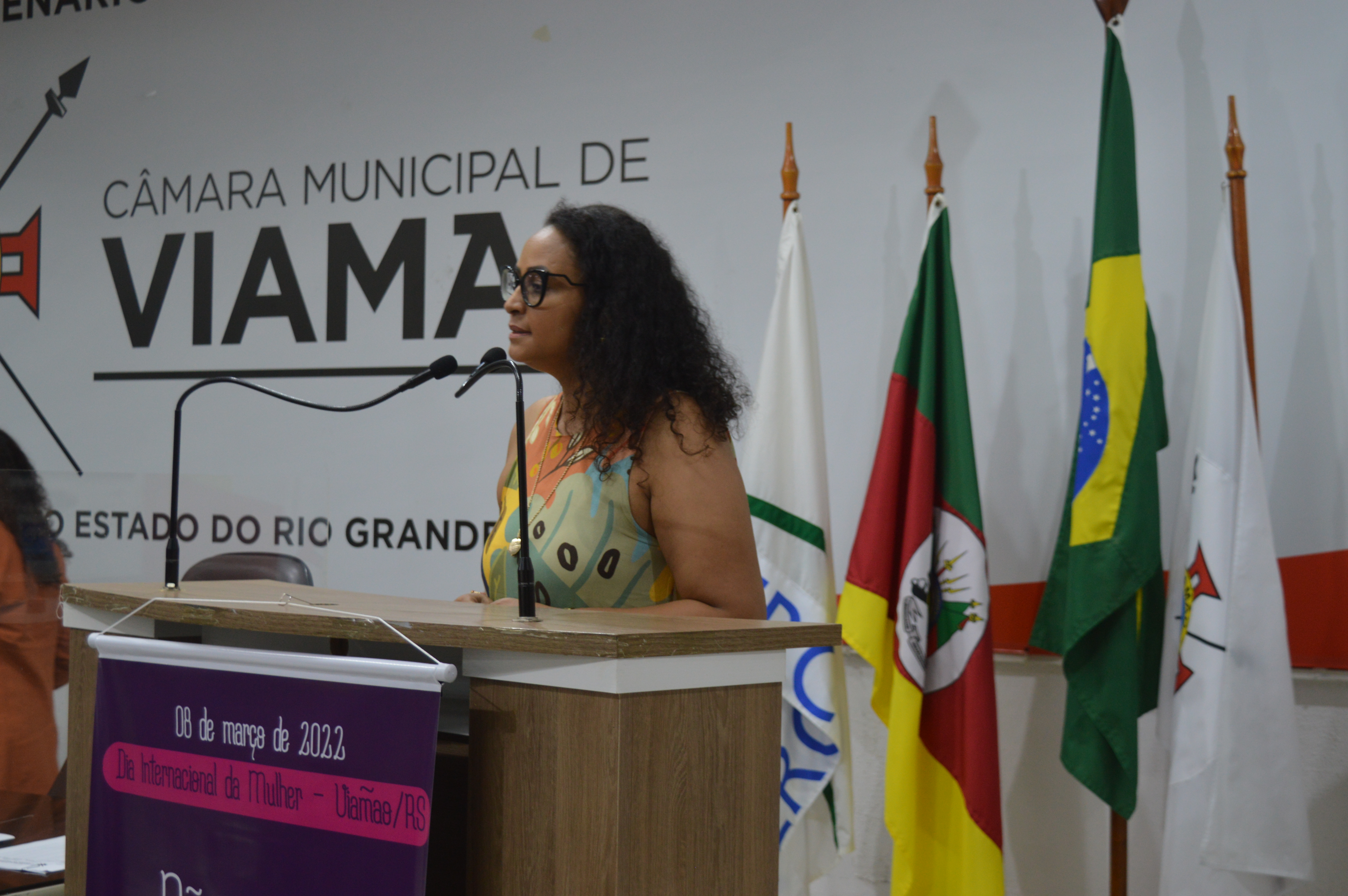 DEBATE - A professora Luciana Conceição, uma das homenageadas, destacou que é preciso valorizar a ancestralidade e discutir as questões étnico-raciais. “A população negra é a maioria em Viamão e há mais de 200 casas de religião de matriz africana na cidade. O olhar sobre isso já foi invisibilizado, mas, hoje em dia, nota-se mais atenção em relação a estes importantes temas”, pontuou. Luciana também disse que é necessário garantir que as mulheres tenham uma rede adequada de apoio que contemple os seus direitos. “Não basta denunciar um agressor que comete um ato de violência. É preciso oferecer uma rede de suporte efetiva à mulher”, enfatizou.