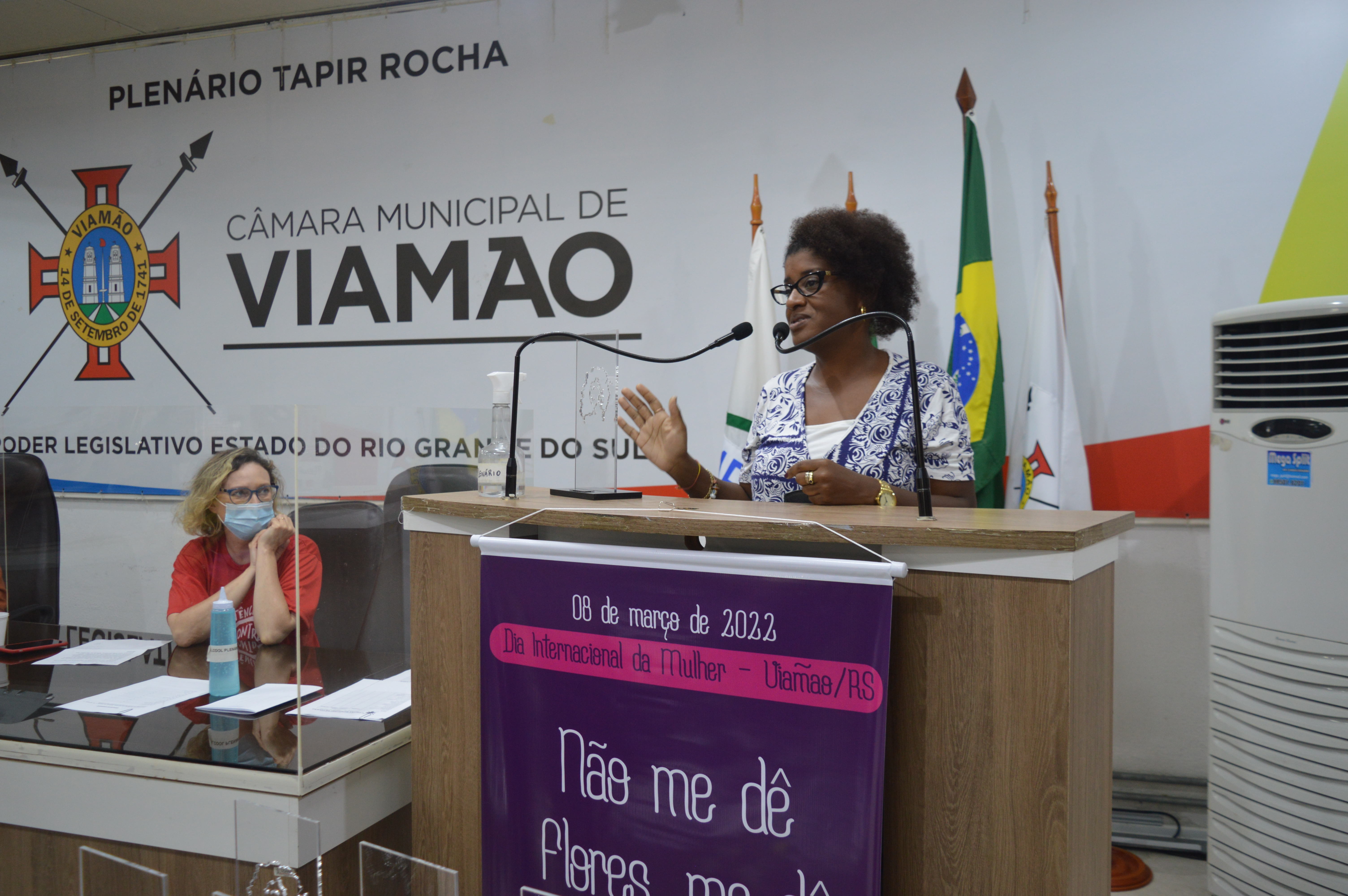 As vereadoras Denise Guedes e Eda Regina também enalteceram a importância da participação crescente das mulheres no âmbito da política e em outros espaços sociais, destacando a relevância da iniciativa da outorga do Troféu Márcia Santana pelo Legislativo viamonense.