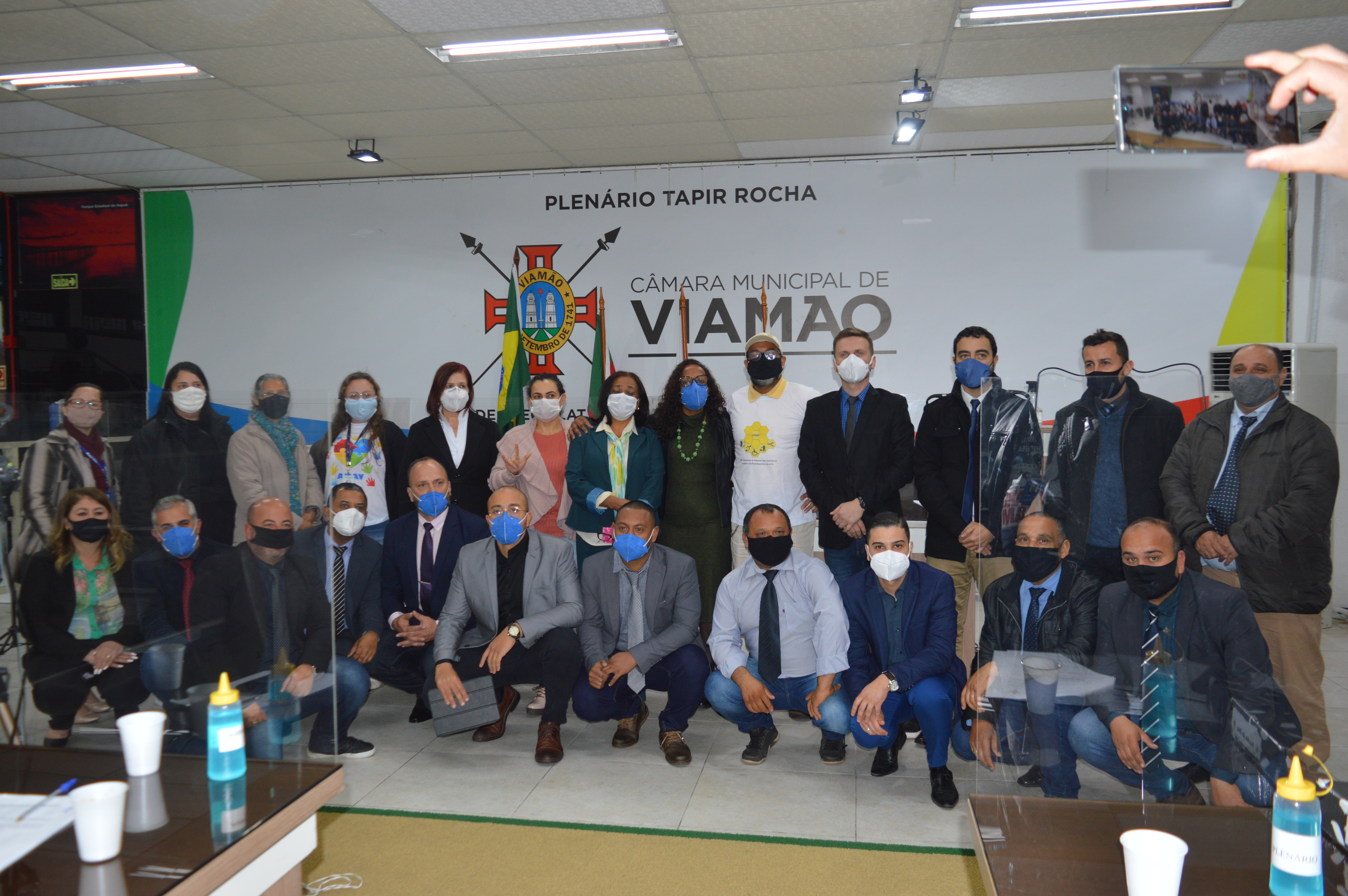 Na sessão plenária desta terça-feira (24), no plenário Tapir Rocha, estiveram presentes a presidente da Associação de Pais e Amigos dos Excepcionais – APAE, Maria Helena dos Santos; o presidente do Conselho Municipal dos Direitos da Pessoa com Deficiência de Viamão – Compede, Márcio Ferreira; o vice-presidente da União Viamonense de Pessoas com Deficiência – UVIDEF, Jair Silva dos Ângelos; e a intérprete de Língua Brasileira de Sinais – LIBRAS, Catiele Rodrigues. No Poder Legislativo Viamonense, a Comissão de Defesa dos Direitos da Pessoa com Deficiência é composta pelo presidente Fabrício – MDB e pelos membros Dieguinho Santos – PSD e Thiago Gutierres – PSD.