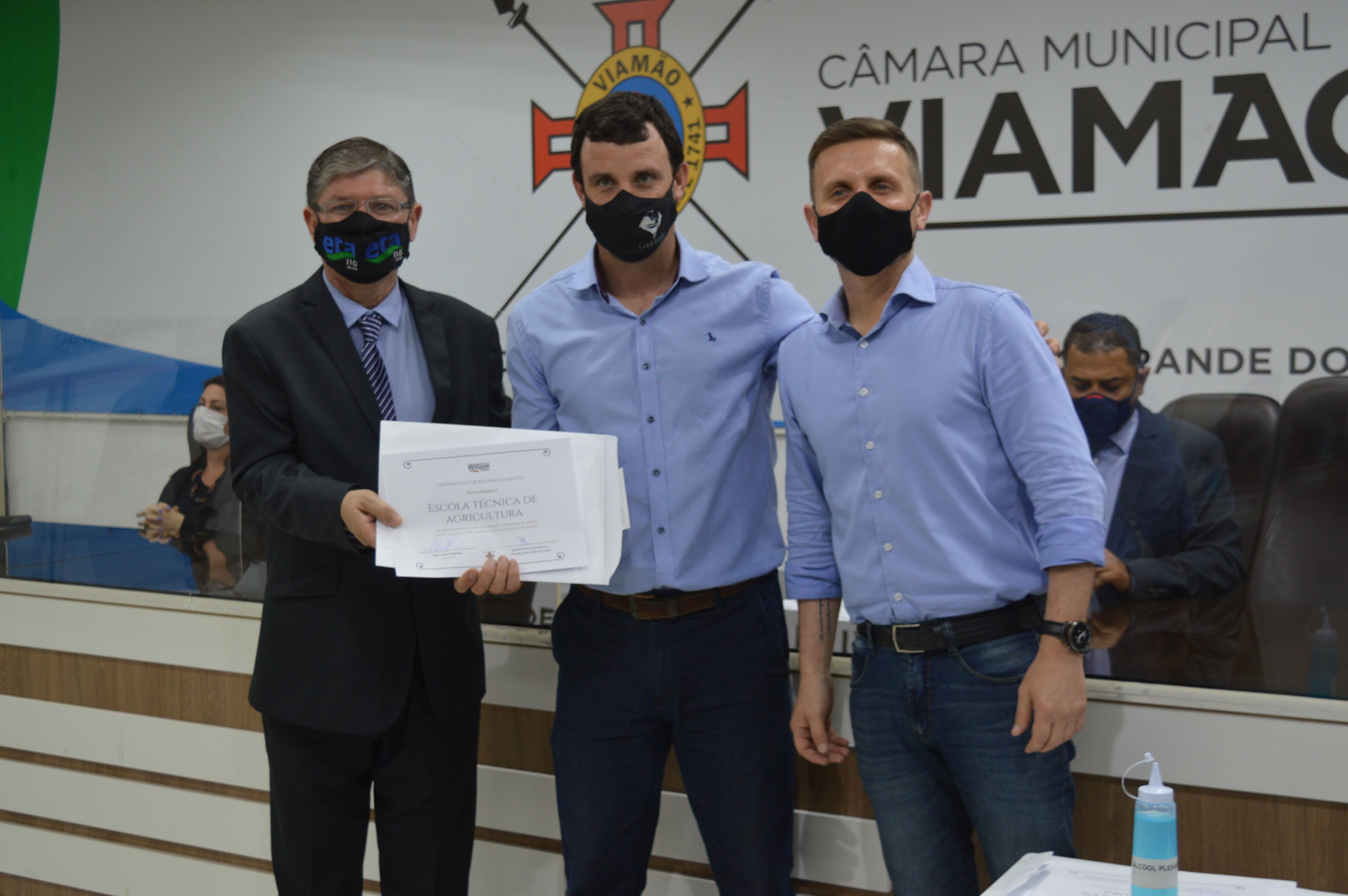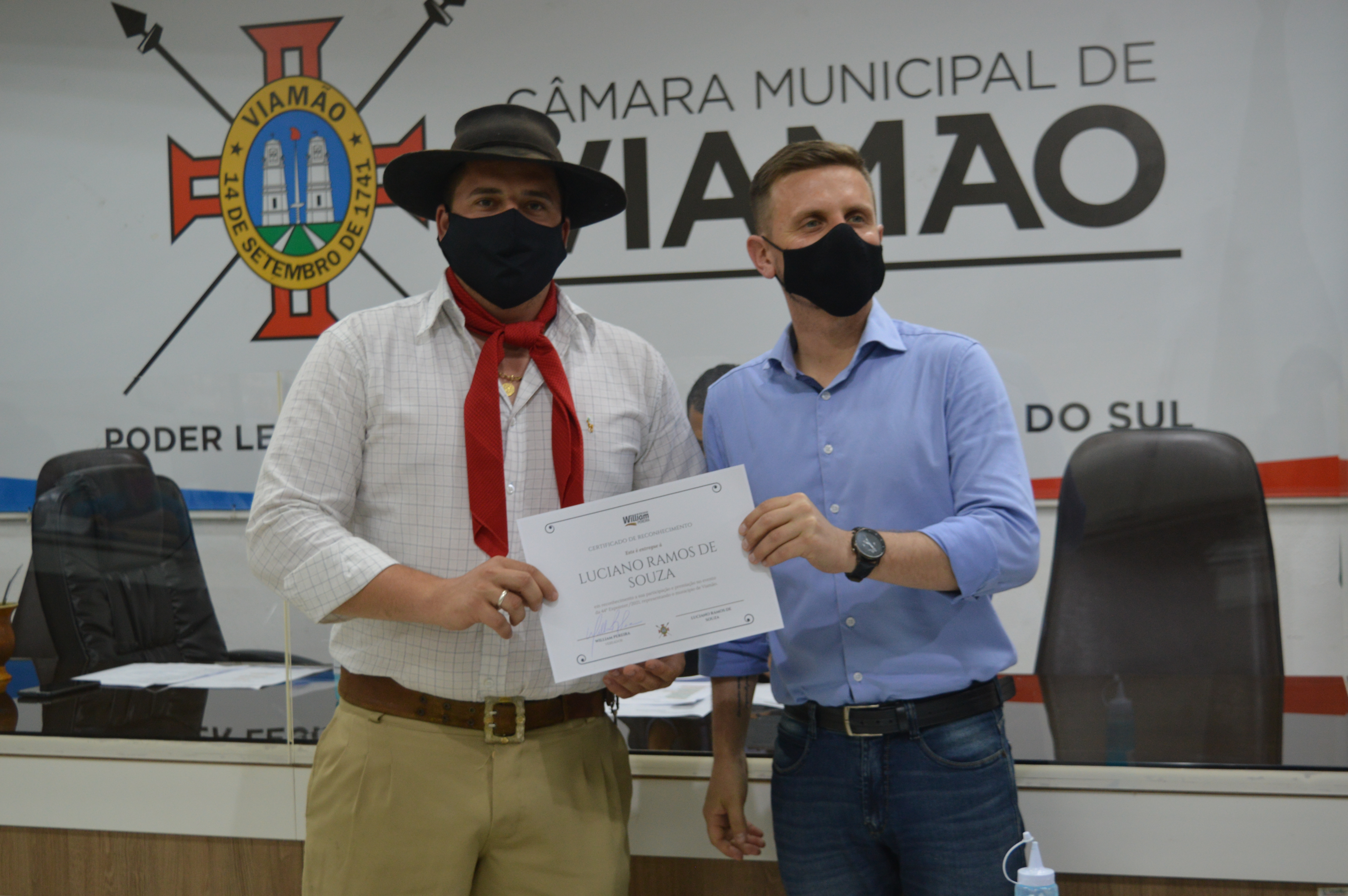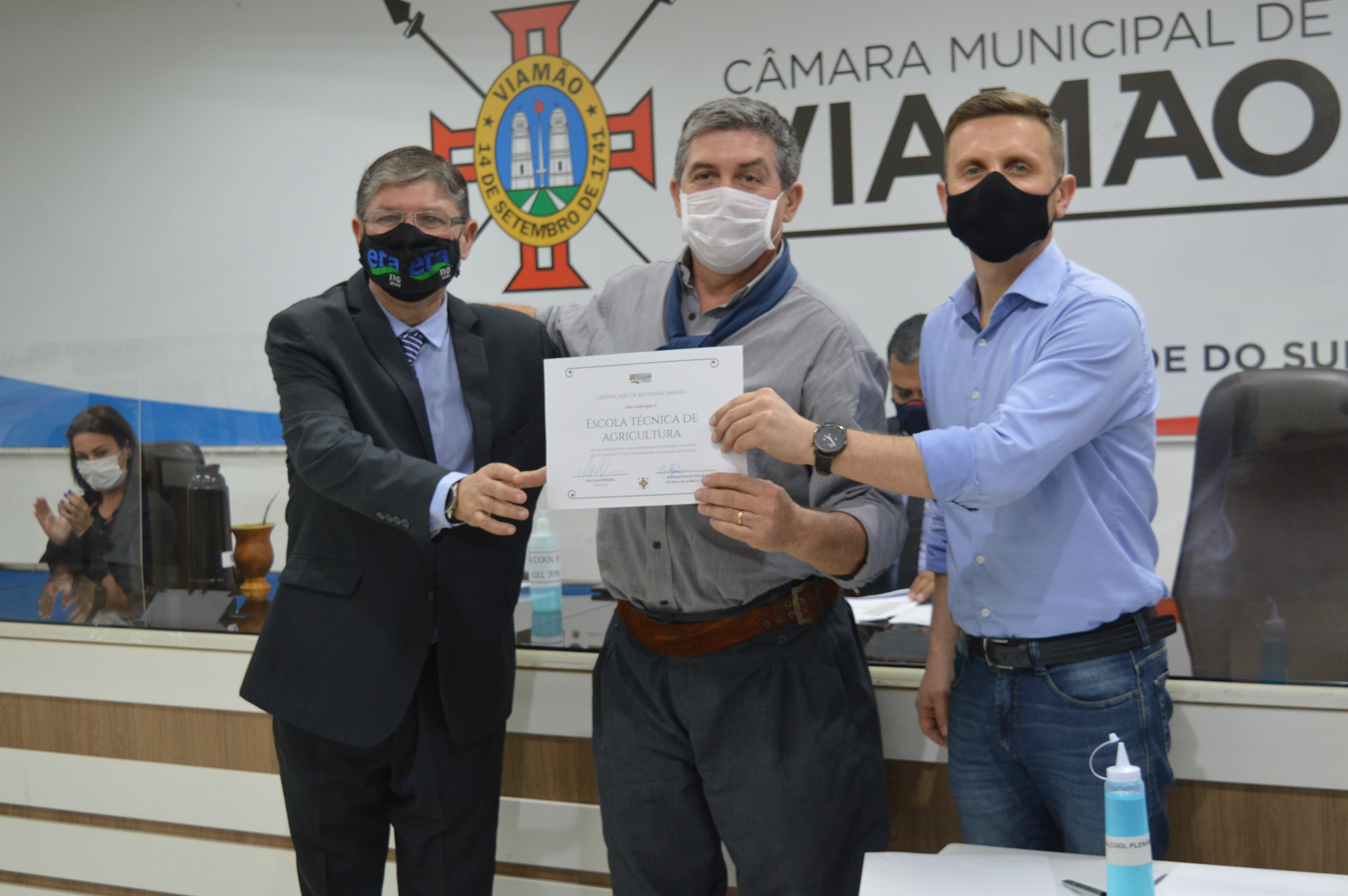 A Câmara Municipal de Viamão – CMV, por iniciativa do vereador William Pereira – PTB, realizou sessão solene, nesta segunda-feira (27), em homenagem aos viamonenses premiados na 44ª Expointer. A abertura do evento foi realizada pelo presidente do Poder Legislativo, Luís Armando Azambuja – PSDB, que parabenizou todos os homenageados e destacou a relevância da solenidade para a valorização crescente da área rural. Também estiveram no evento os vereadores Alex Boscaini – PT, Rodrigo do Bar – Cidadania e Markinhos da Estalagem - PSB.