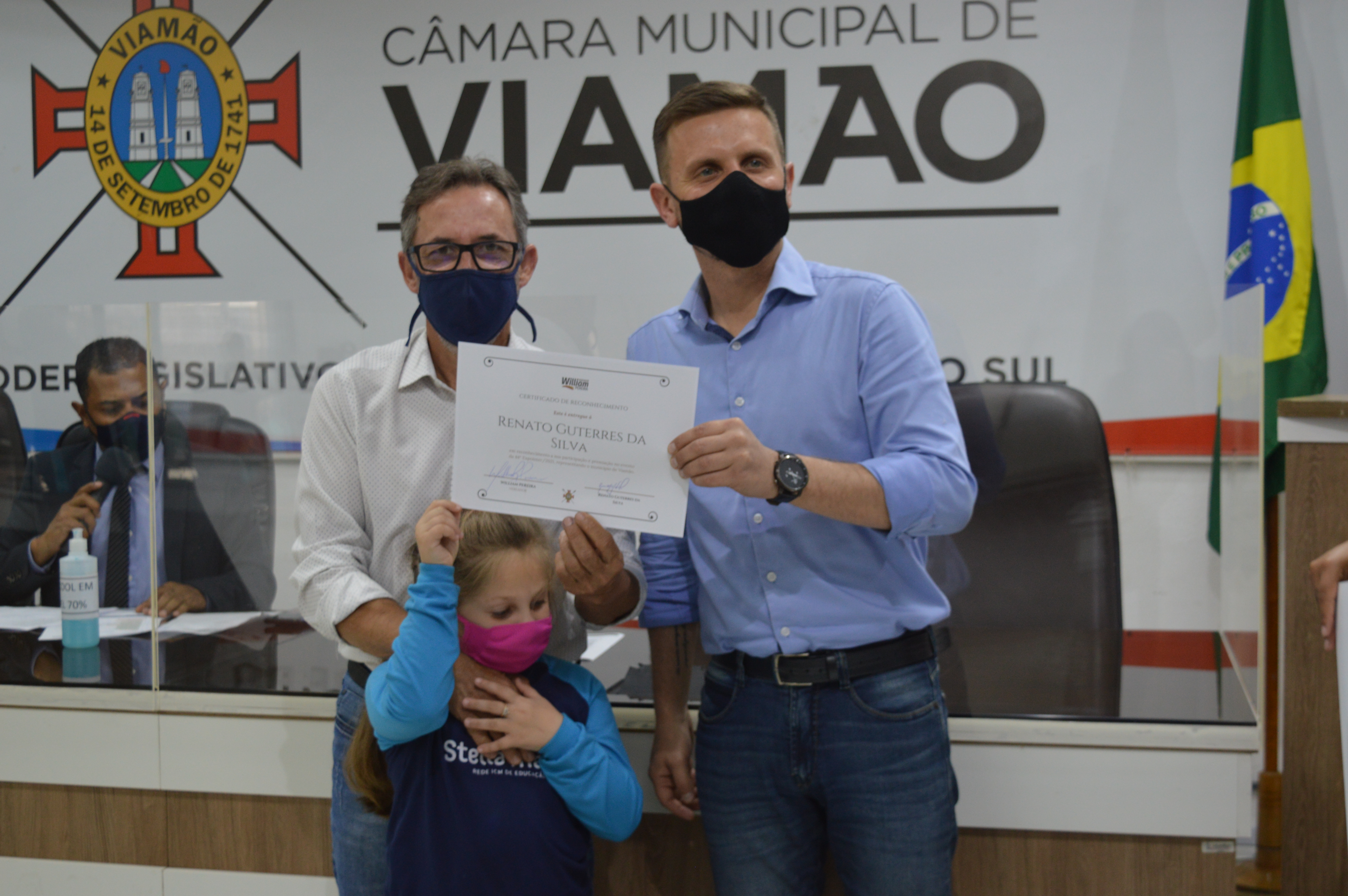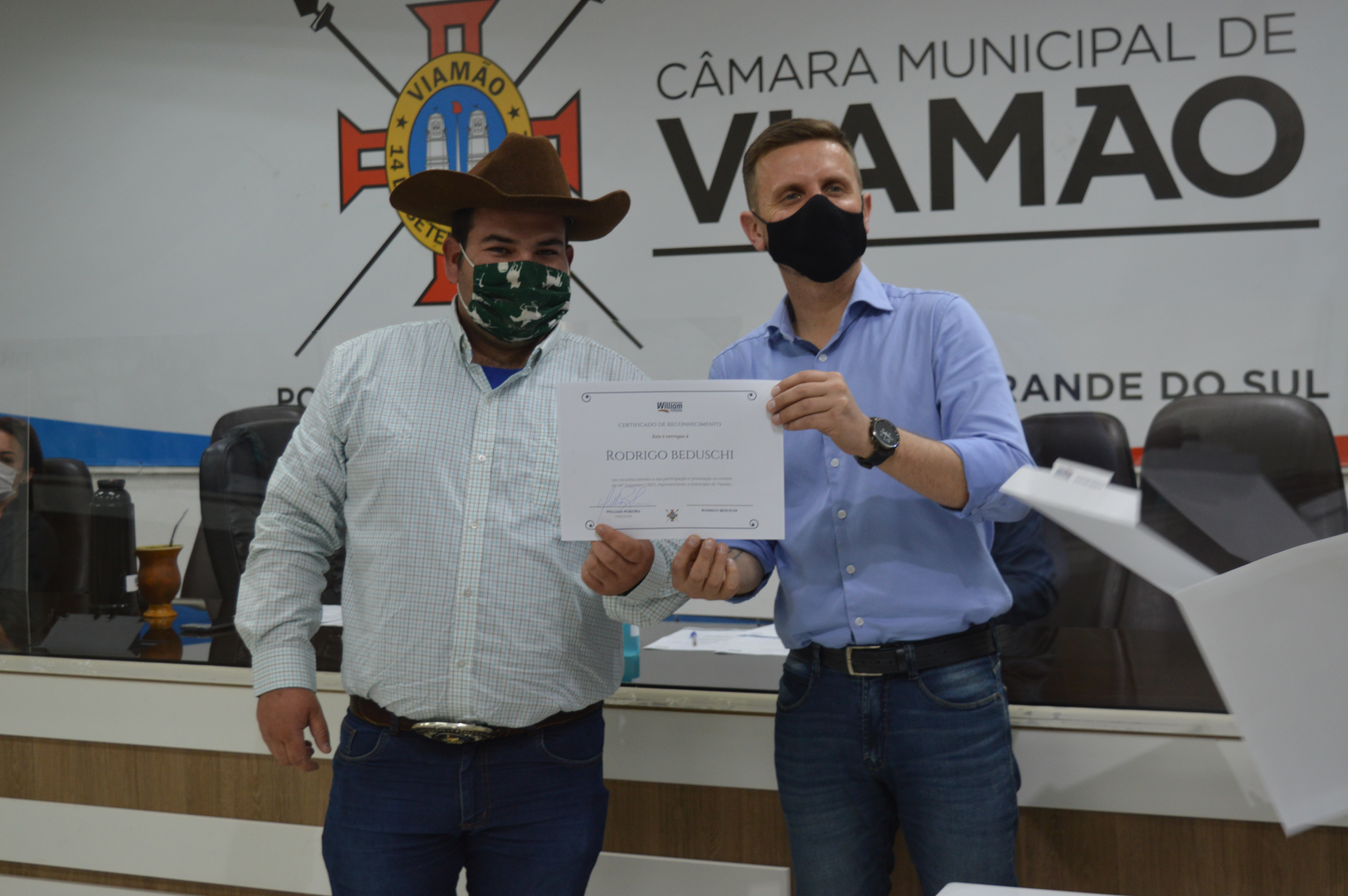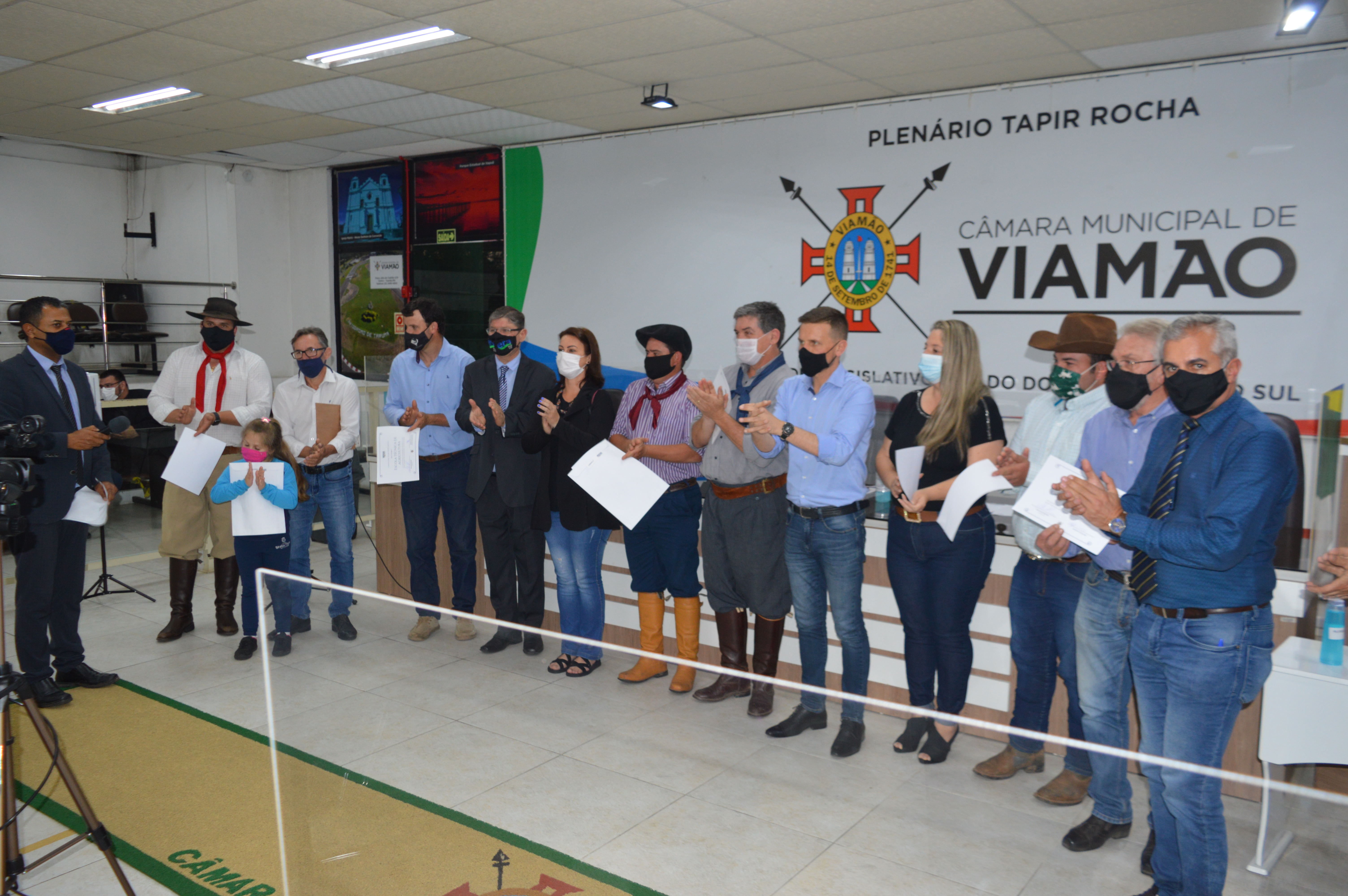 A Câmara Municipal de Viamão – CMV, por iniciativa do vereador William Pereira – PTB, realizou sessão solene, nesta segunda-feira (27), em homenagem aos viamonenses premiados na 44ª Expointer. A abertura do evento foi realizada pelo presidente do Poder Legislativo, Luís Armando Azambuja – PSDB, que parabenizou todos os homenageados e destacou a relevância da solenidade para a valorização crescente da área rural. Também estiveram no evento os vereadores Alex Boscaini – PT, Rodrigo do Bar – Cidadania e Markinhos da Estalagem - PSB.