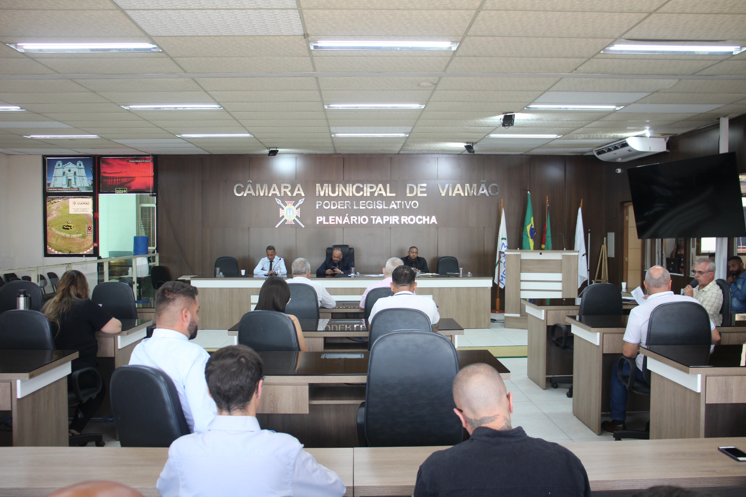 Os vereadores da Câmara Municipal de Viamão - CMV reuniram-se para mais uma sessão representativa do recesso parlamentar, na tarde desta quarta-feira (05), no plenário Tapir Rocha, sob a condução do presidente do Legislativo, Rodrigo Pox – Podemos. Foi realizada a leitura das correspondências em geral e outros documentos recebidos pela Mesa, além da votação das atas das sessões representativas 03 e 04/2025.