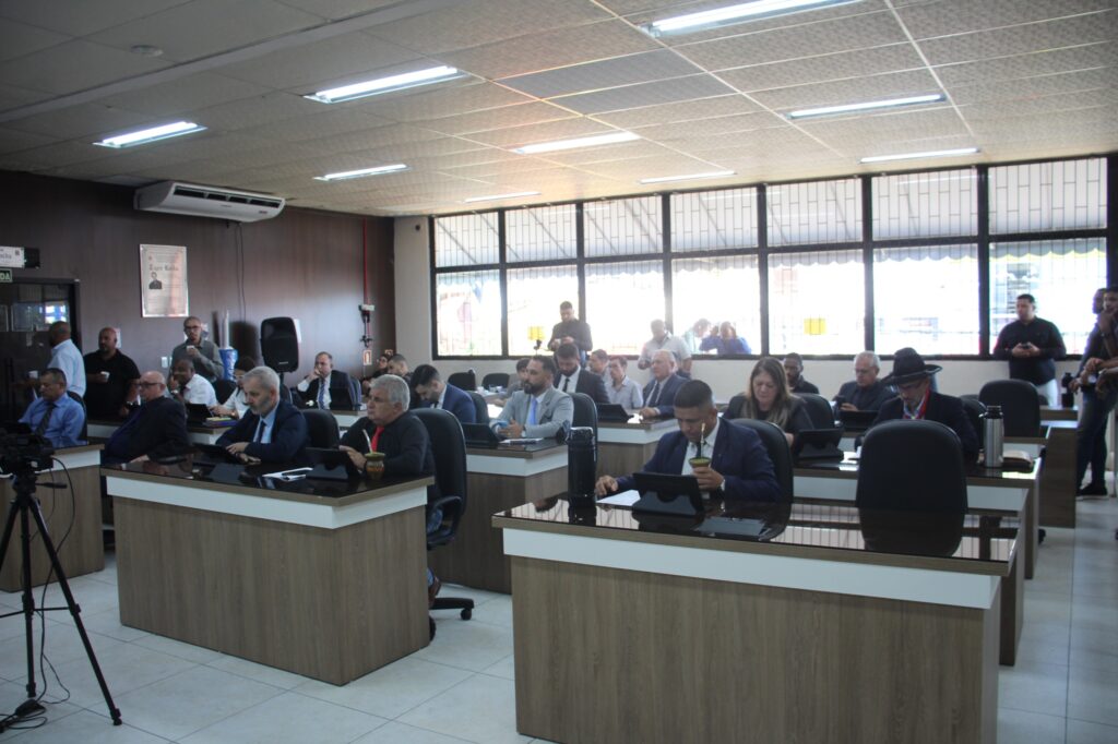 Na tarde de hoje (18), a Câmara Municipal de Viamão – CMV realiza a abertura dos trabalhos legislativos do ano de 2025 com a retomada das sessões ordinárias nas terças e quintas-feiras, às 16h, no plenário Tapir Rocha. A Mesa Diretora da CMV é composta pelo presidente Rodrigo Pox – Podemos, que tem ao seu lado o vereador Luisinho do Espigão – PSDB, como 1º vice-presidente, vereador Thiago Gutierres – PSD, como 2º vice-presidente, Markinhos da Estalagem – AGIR e Felipe Almada – Progressistas, respectivamente 1º e 2º secretários. As sessões plenárias também podem ser conferidas por meio de transmissão ao vivo veiculada nas redes sociais Facebook, Instagram e YouTube da Câmara por meio da CMV TV.