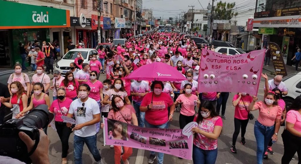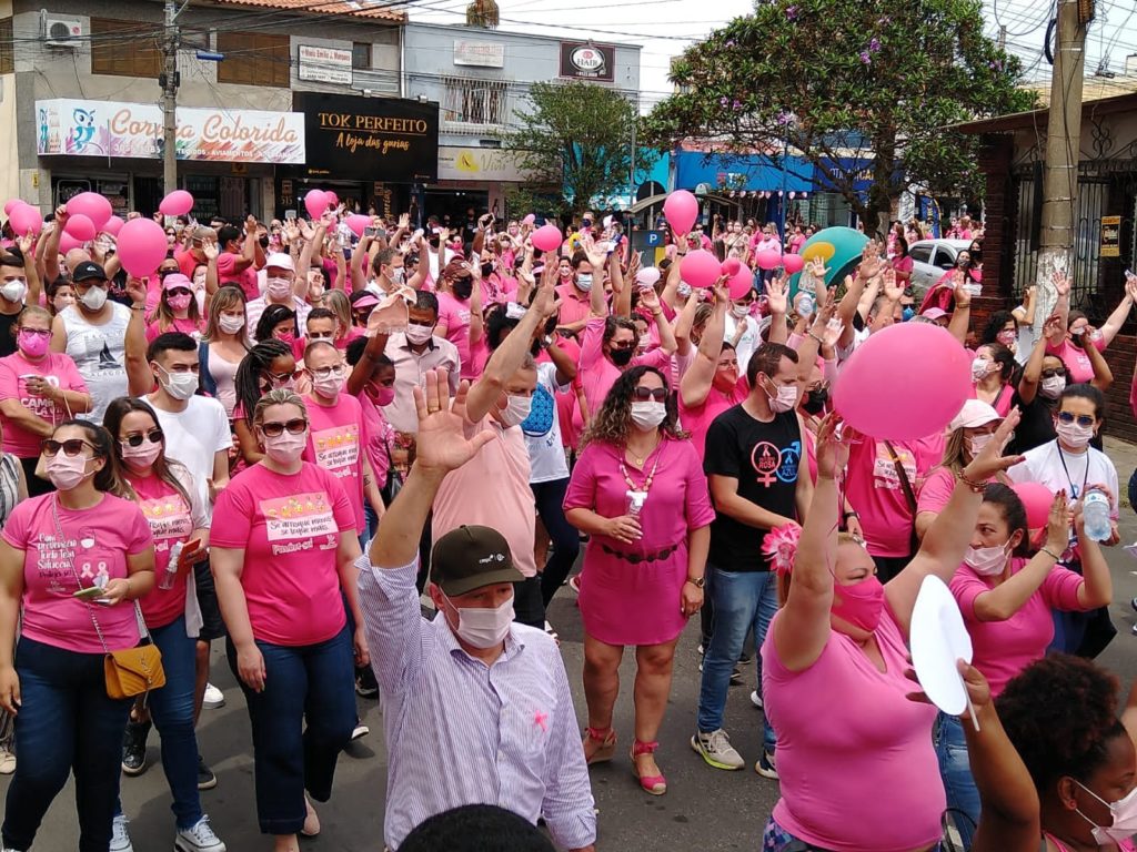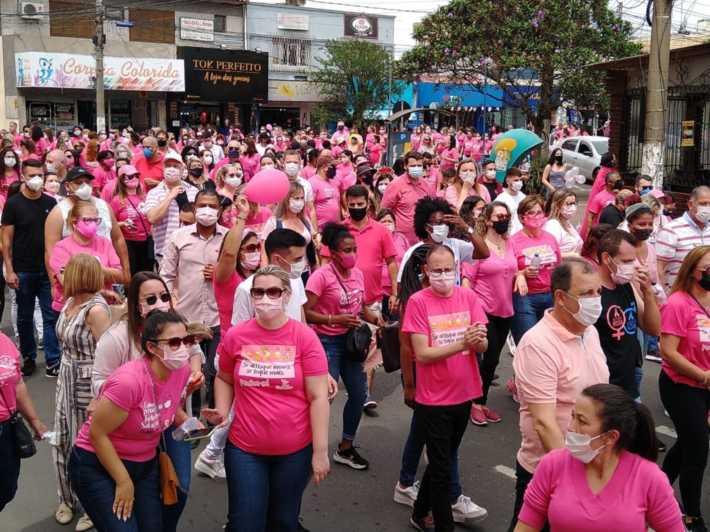 Ao final da caminhada, que terminou em frente à Igreja Matriz, a presidente do Conselho Municipal de Saúde, Laureci Goulart, frisou a importância das mulheres dedicarem um tempo a si mesmas. “Nós, mulheres, cuidamos de todos, mas também precisamos cuidar de nós.” A secretária Adjunta da Saúde, enfermeira Michele Galvão, disse que a palavra do dia é “Alegria”. “Alegria em estar aqui, alegria em poder encontrar todas vocês aqui e com saúde. O ano de 2020 foi muito difícil para todas, mas hoje, conseguimos parar a cidade e lembrar as mulheres para cuidarem da sua saúde, fazendo os exames preventivos. Hoje é dia de colocar os exames em dia. As unidades de saúde estão abertas e recebendo as mulheres sem agendamento para coleta de CP e exame clínico das mamas. Também é possível solicitar mamografias e ecografias mamárias, se houver necessidade. Reativamos a Unidade Móvel para ir mais longe e cuidar da saúde de todas.”