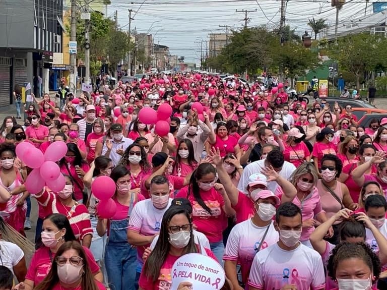 Faixas, cartazes e balões coloriram as ruas e chamavam a atenção para o cuidado com a saúde. Em cima de um trio elétrico, as professoras de ritmo Jeh e Tia Lisi animaram as mulheres durante o percurso.