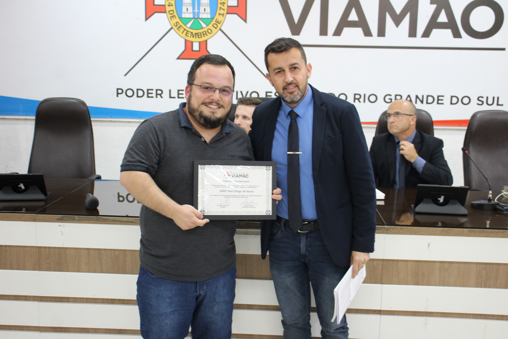 Na sequência, o diretor da instituição escolar, Bruno Régio, subiu à tribuna para fazer suas considerações de agradecimento em relação à homenagem.