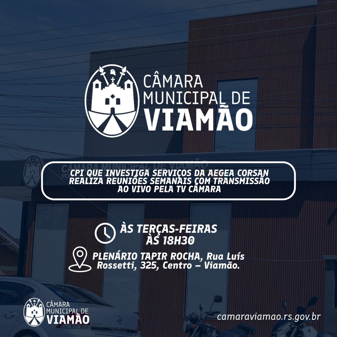 A Comissão Parlamentar de Inquérito - CPI criada para investigar a eficiência e a qualidade dos serviços prestados pela concessionária Aegea Corsan — responsável pelo abastecimento de água e pelo tratamento de esgoto em Viamão — realiza reuniões semanais às terças-feiras, sempre às 18h30. Hoje (28), ocorre mais um encontro da comissão, no mesmo horário.