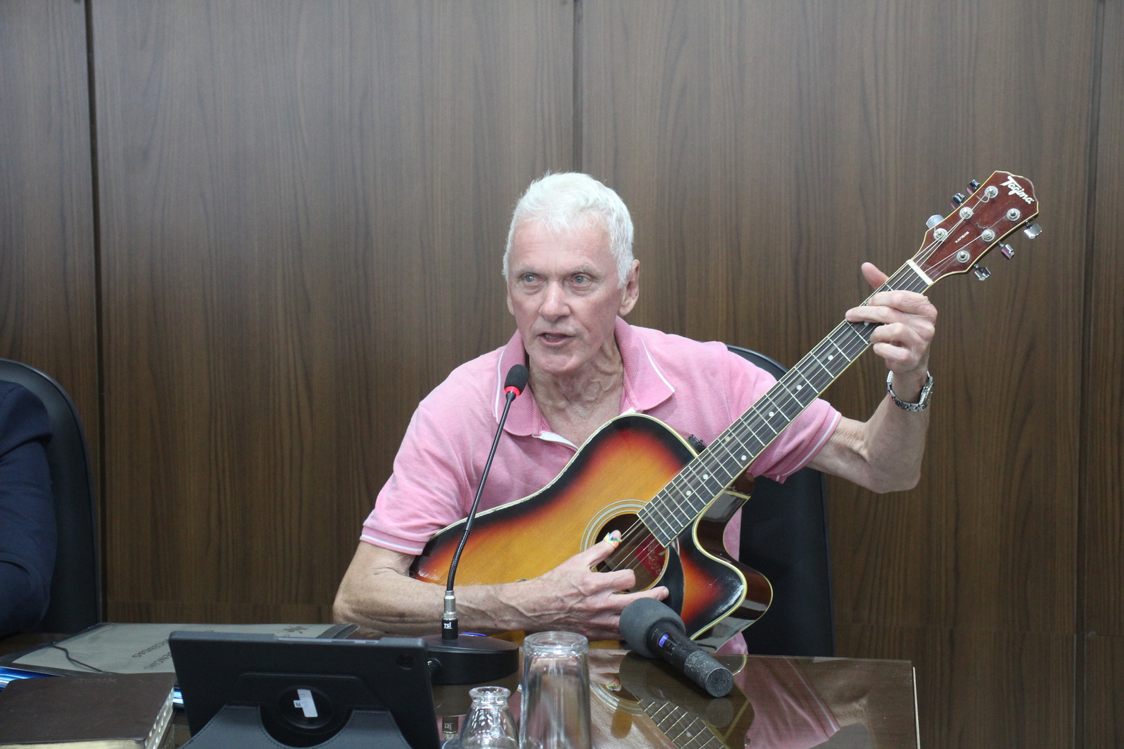Na sessão plenária de terça-feira (26), o vereador Dieguinho Santos, integrante da bancada do PSD, realizou uma homenagem ao artista Carlos Alberto Carvalho. A justificativa da homenagem faz referência aos trabalhos voluntários que Carlos presta na cidade, através de seu talento, cantando e tocando o seu violão, nos grupos de saúde mental da Policlínica Central e geriatrias do município.