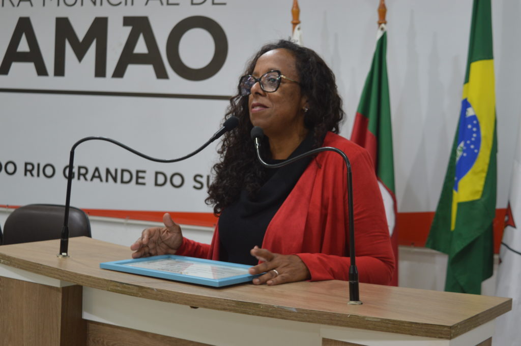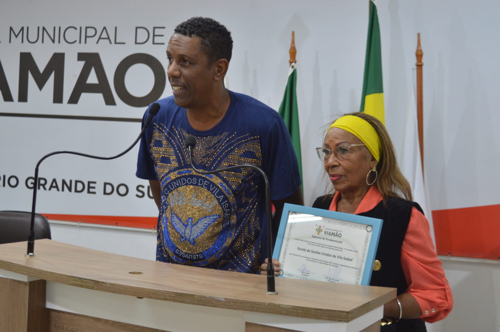 A Escola de Samba Unidos de Vila Isabel recebeu um diploma de parabenização na sessão plenária desta terça-feira (24), na Câmara Municipal de Viamão – CMV, por ser vice-campeã no Carnaval de Porto Alegre 2022. A homenagem aconteceu por iniciativa da vereadora Fátima Maria – PT (Mandato Coletivo), que entregou a honraria ao presidente da Unidos de Vila Isabel, Jorge Corrêa, e à representante da equipe diretiva, Iara Rosa.