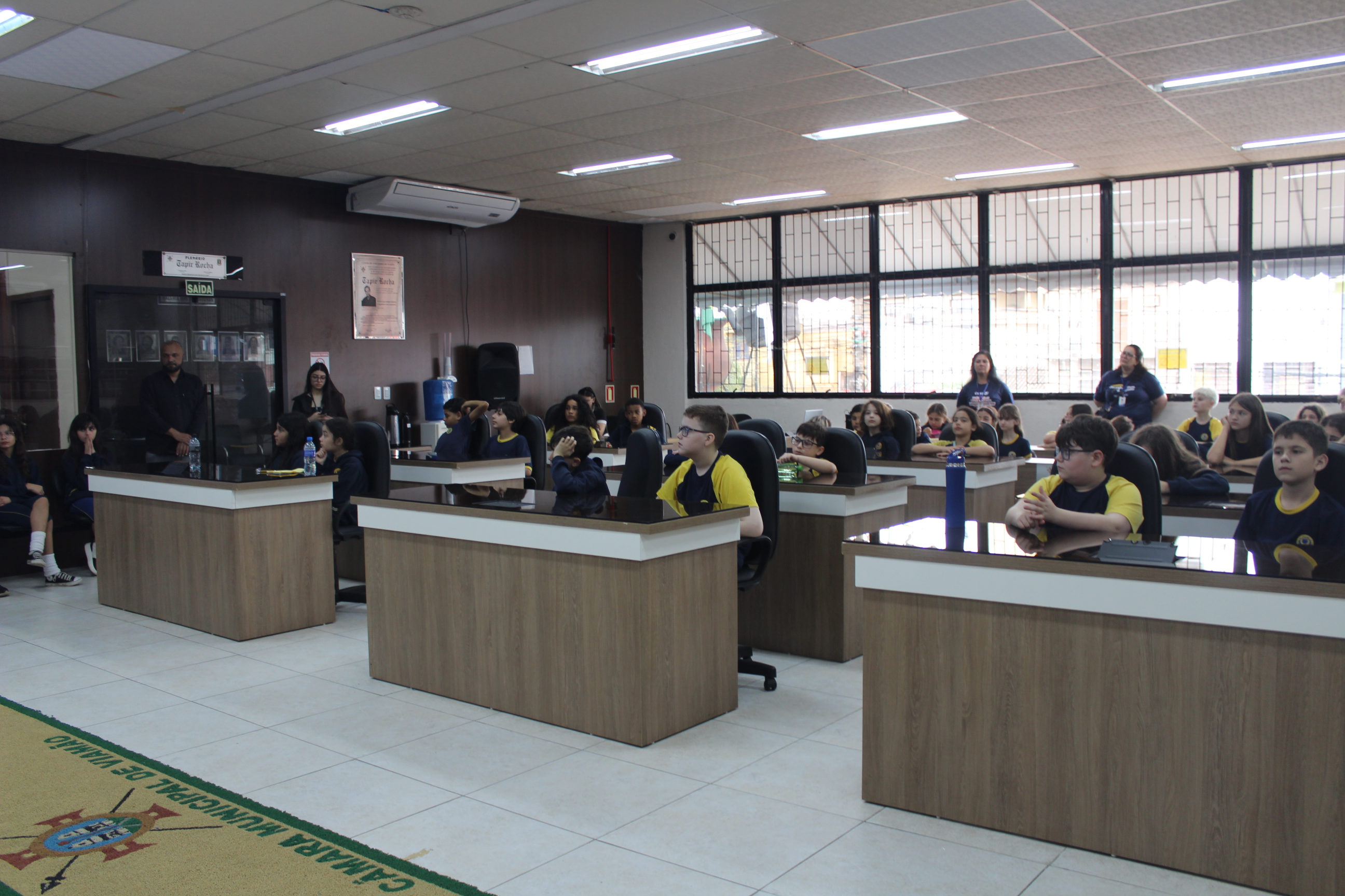 Na manhã desta quarta-feira (17), a Câmara Municipal de Viamão – CMV realizou mais uma edição da Escola do Legislativo com a participação de 39 alunos, do 5º ano do Ensino Fundamental, da Escola CESI Santa Isabel. Esteve presente no evento, que aconteceu no plenário Tapir Rocha, o vereador Leandro Bonatto – PSDB e a diretora da Escola do Legislativo, Josi Kucharski. Também compareceram a coordenadora pedagógica Lisiane Rocha e as professoras Lisiane Santos e Zoraia Quadros.