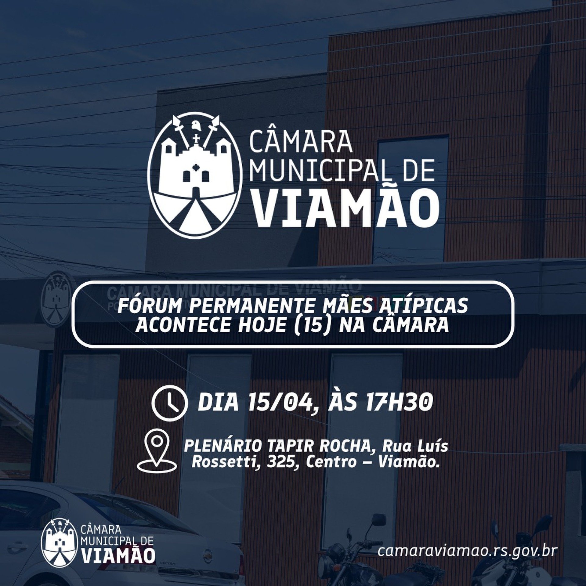 O Fórum Permanente Mães Atípicas será realizado hoje, dia 15 de abril, às 17h30, na Câmara Municipal de Viamão - CMV. O encontro tem como propósito promover o diálogo, a troca de experiências e o fortalecimento de políticas públicas voltadas às pessoas com Transtorno do Espectro Autista - TEA e suas famílias.