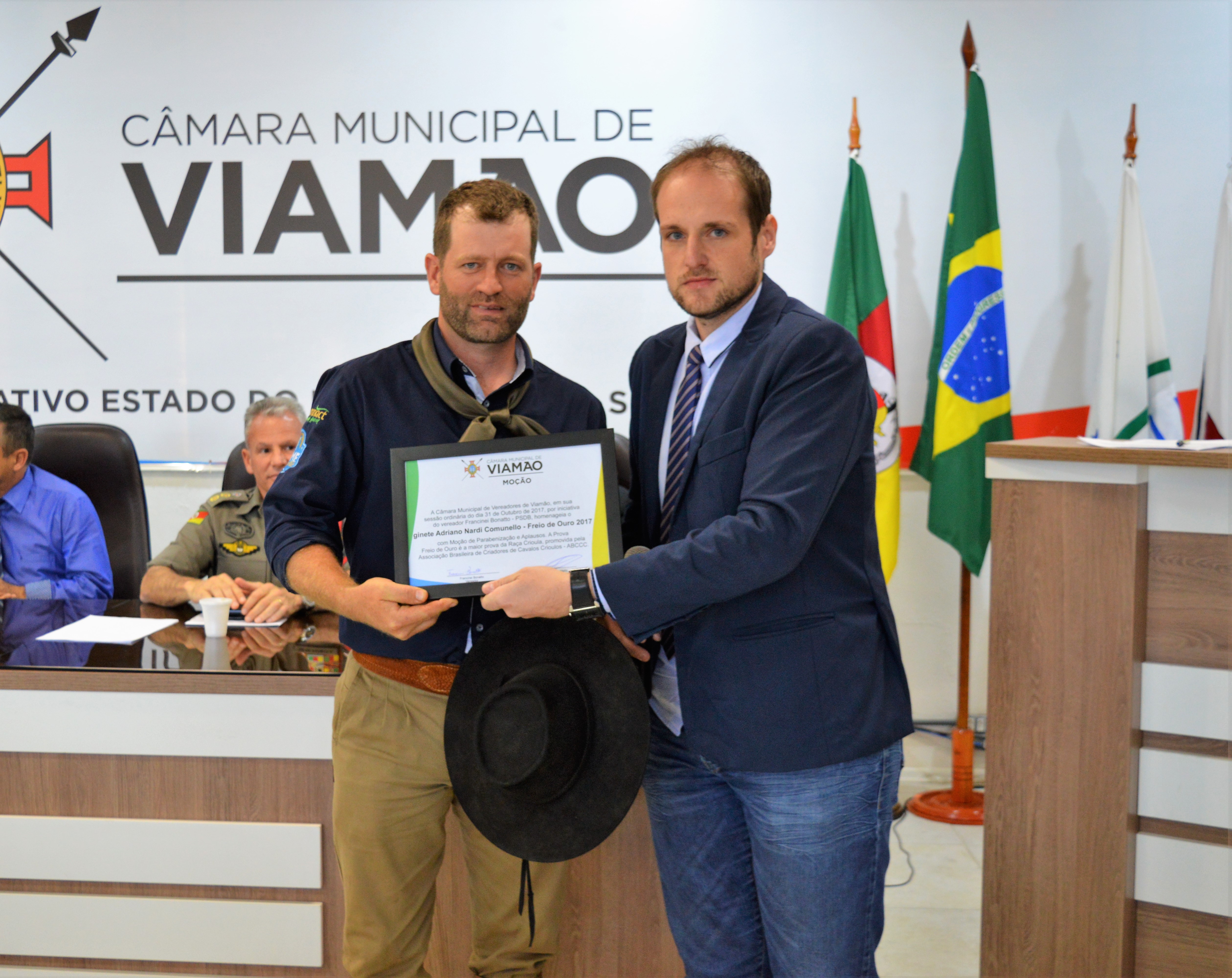 Também foram homenageados com moção, o ginete Adriano Streck – Freio de Prata 2012, o ginete Adriano Nardi Comunello – Freio de Ouro 2017 e a Cabanha Marca dos Santos e sua proprietária Gilvane Teresinha Marca dos Santos, dona do Cavalo F5 Licurgo do Tapajós, campeão nacional de Rédeas da Associação Nacional de Rédeas – ANCR. A Cabanha Marca dos Santos fica localizada no distrito de Águas Claras.