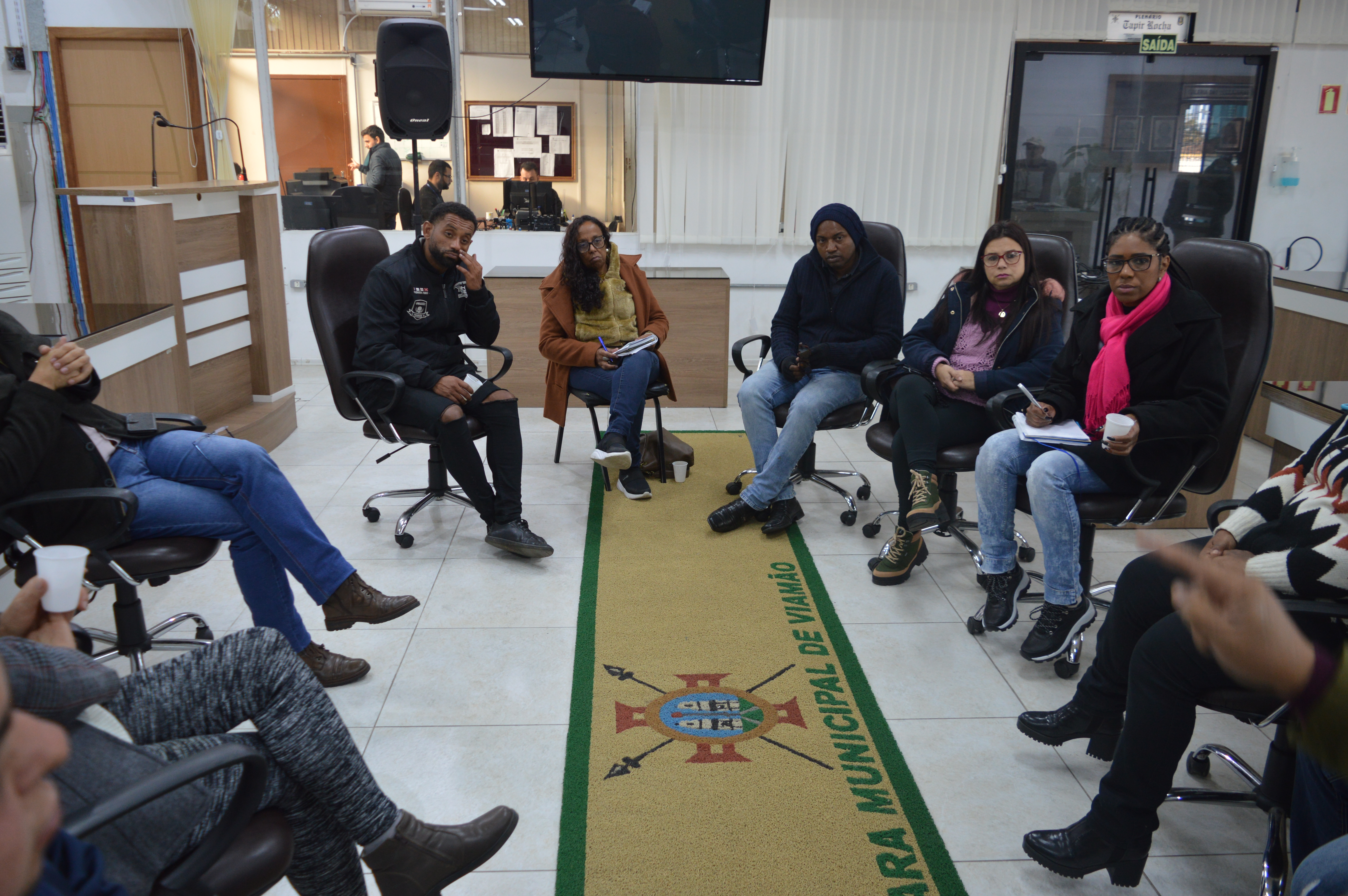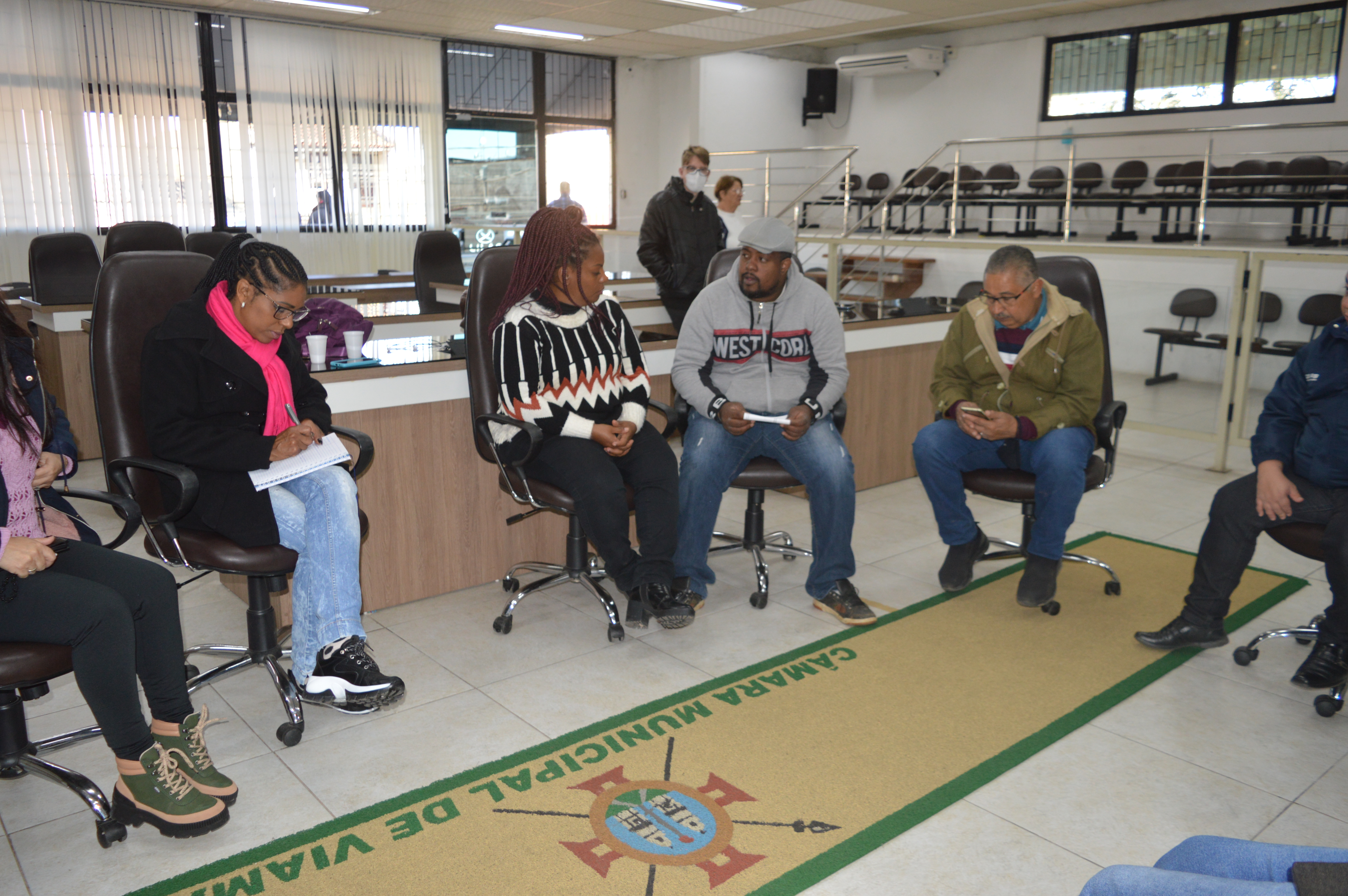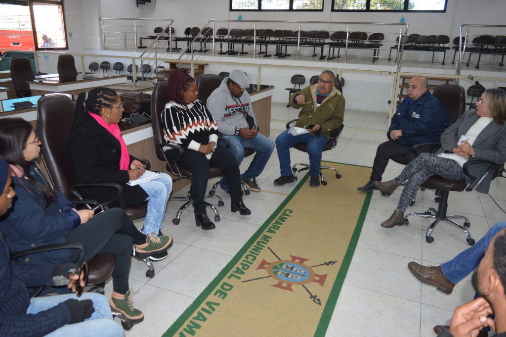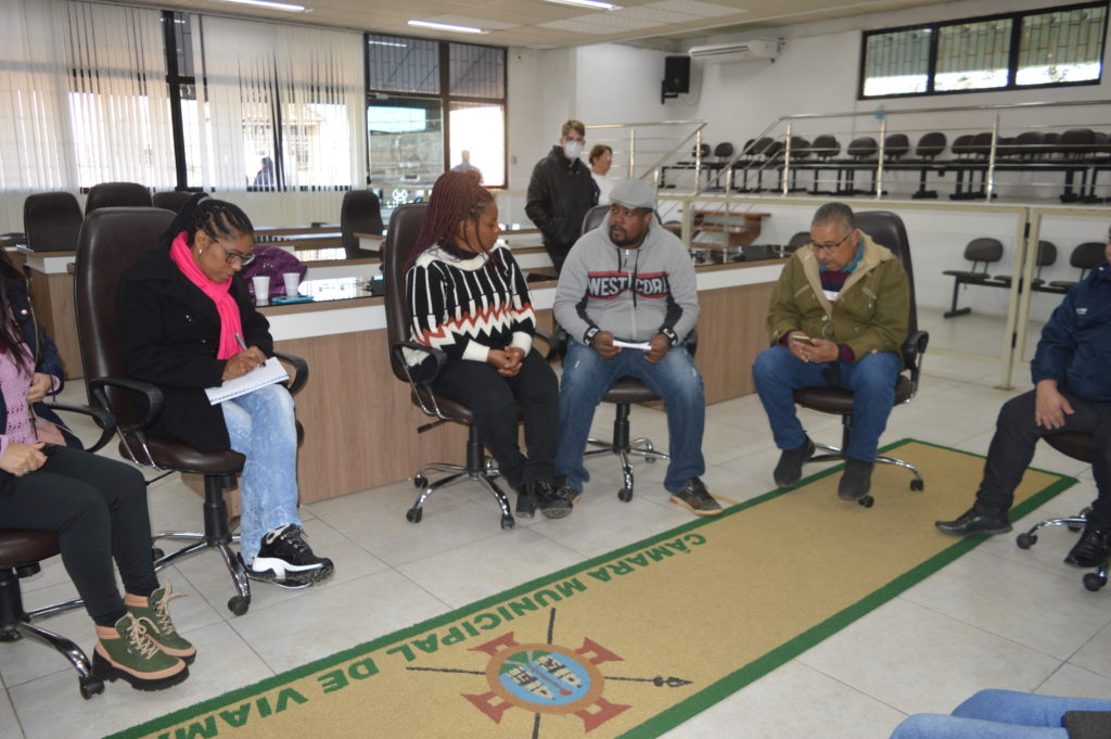 A Frente Parlamentar em Defesa dos Povos Tradicionais de Matriz Africana realizou reunião ontem (31), no plenário Tapir Rocha, com a participação das vereadoras Fátima Maria – PT, Denise Guedes - PSDB e da co-vereadora Isabel Rodrigues (Mandato Coletivo Teremos vez), além dos vereadores Alex Boscaini – PT e Rodrigo do Bar – Cidadania. Foram discutidos o Projeto do Marco Legal dos Povos e Comunidades Tradicionais de Matriz Africana, além dos temas de dispensa de alvará para terreiros e posse dos membros do Conselho Municipal de Povos de Terreiro.