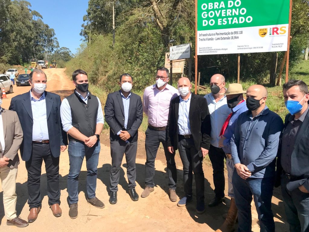 O presidente da Câmara Municipal de Viamão - CMV, vereador Luís Armando Azambuja - PSDB, juntamente ao prefeito Valdir Bonatto - PSDB, entre outras autoridades, participou, nesta segunda-feira (30), da cerimônia de ordem de início, realizada pelo governador Eduardo Leite, das obras da pavimentação de 18,9 quilômetros da ERS-118, do trecho entre Viamão e Porto Alegre (Bairro Lami), que receberá investimento de R$ 17,67 milhões e deverá ser concluída em 2022, dentro do programa Avançar do Plano de Obras do governo do Estado.