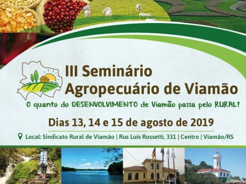O III Seminário Agropecuário de Viamão começa hoje (13) na cidade, com programação que se estende até a próxima quinta-feira (15). O tema abordado nesta edição é “O quanto do desenvolvimento de Viamão passa pelo rural?”. As atividades acontecem no Sindicato Rural de Viamão, que fica na Rua Luís Rossetti, 331, Centro – Viamão.