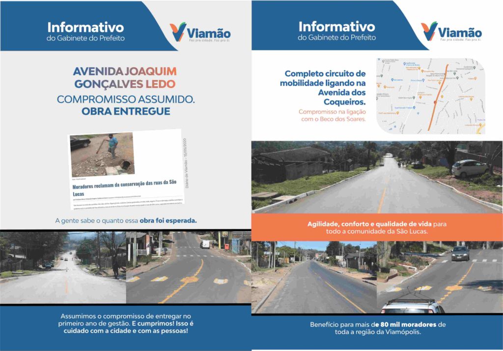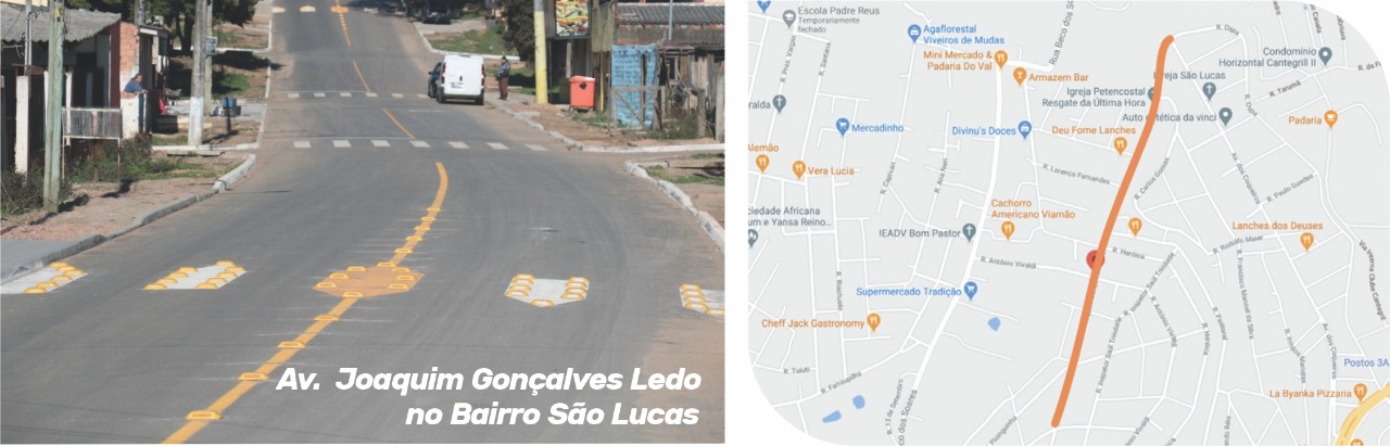 Umas das obras completou o circuito de mobilidade urbana do Bairro São Lucas com a Avenida dos Coqueiros, onde foram entregues as obras de asfaltamento na Avenida Joaquim Gonçalves Ledo, no trecho entre a rua A.J. Renner e a avenida Coqueiros, no Bairro São Lucas.