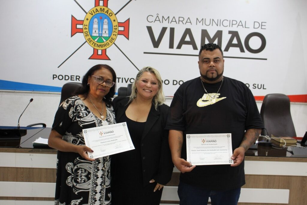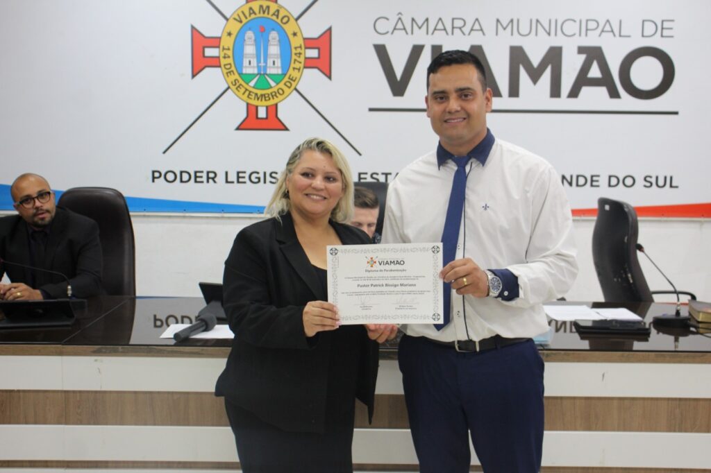 Na sessão plenária desta quinta-feira (30), a vereadora suplente Paula Moreira - Progressistas, realizou uma homenagem a líderes religiosos do município de Viamão por suas contribuições filantrópicas em benefício da cidade. São eles: Padre Wilner Charles; Pastor Patrick Bissigo Mariano; Pastor Paulo Ganzar de Vargas; Pastora Luiza Andrade e Pastor José Roberto de Andrade (em memória); Josoe Roque dos Santos e José Roque dos Santos.