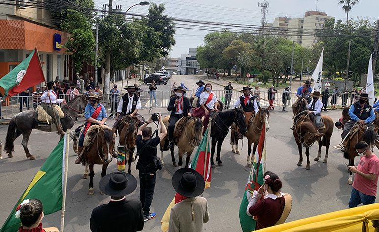 O ato aconteceu na Avenida Coronal Marcos de Andrade, no Centro da cidade, onde foi palco para entidades do movimento tradicionalista (CTGs, Piquetes, DTGs, e outros), que celebraram a Semana Farroupilha.