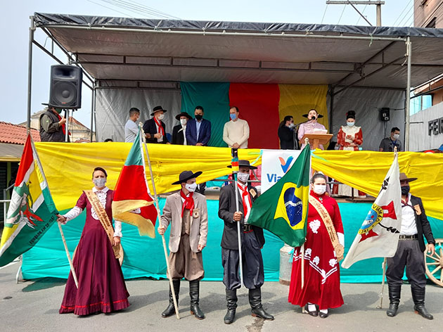 O presidente da Câmara de Viamão – CMV vereador Luís Armando Azambuja – PSDB, acompanhou, nesta segunda-feira (20), ao lado do prefeito Valdir Bonatto – PSDB, e demais autoridades, o Desfile Farroupilha de Viamão, organizado pela Secretaria Municipal de Cultura e União Tradicionalista Viamonense – UTV, que foi realizado seguindo todas as normas de saúde, bem como o bem-estar animal.