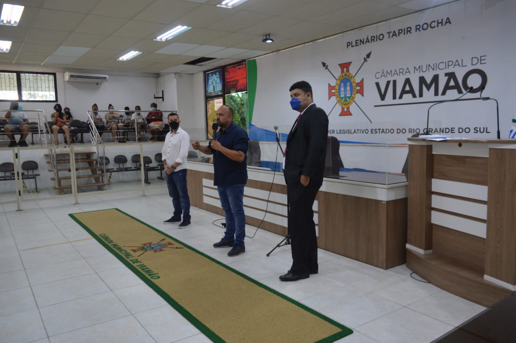 Na tarde desta quinta-feira (20), o presidente da Câmara Municipal de Viamão - CMV, Prof. Igor Bernardes - PL e o segundo secretário, vereador Rodrigo Pox - PDT receberam comitiva de moradores do bairro São Cristóvão, que buscam auxílio acerca do processo de reintegração de posse envolvendo a área. O vereador Eraldo Roggia - PTB, esteve presente.