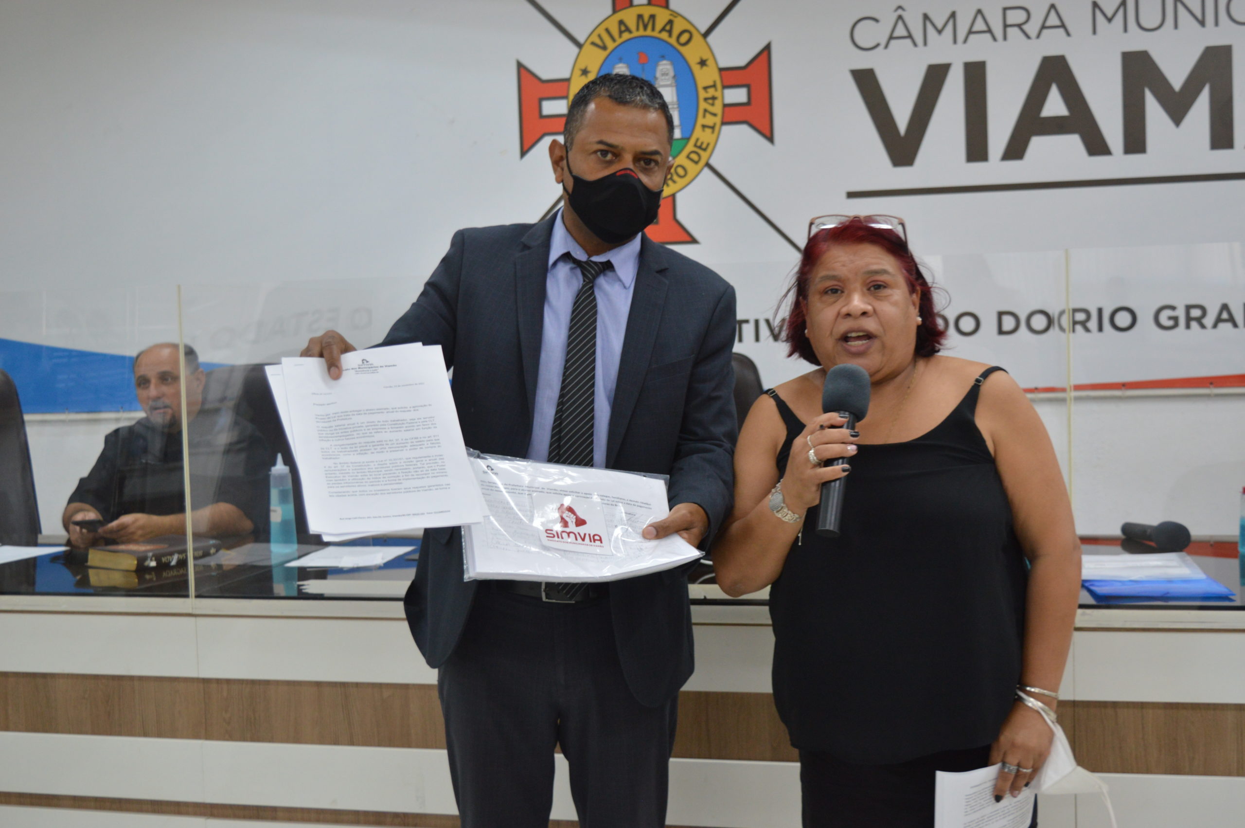 Na sessão ordinária desta terça-feira (23), a presidente do Sindicato dos Municipários de Viamão - SIMVIA, Maria Darcila Tinoco participou da tribuna popular, juntamente das professoras Karla Renée e Adriana Damasceno. Na ocasião, a pauta defendida pelas professoras foi o reajuste salarial do quadro municipal de Viamão.