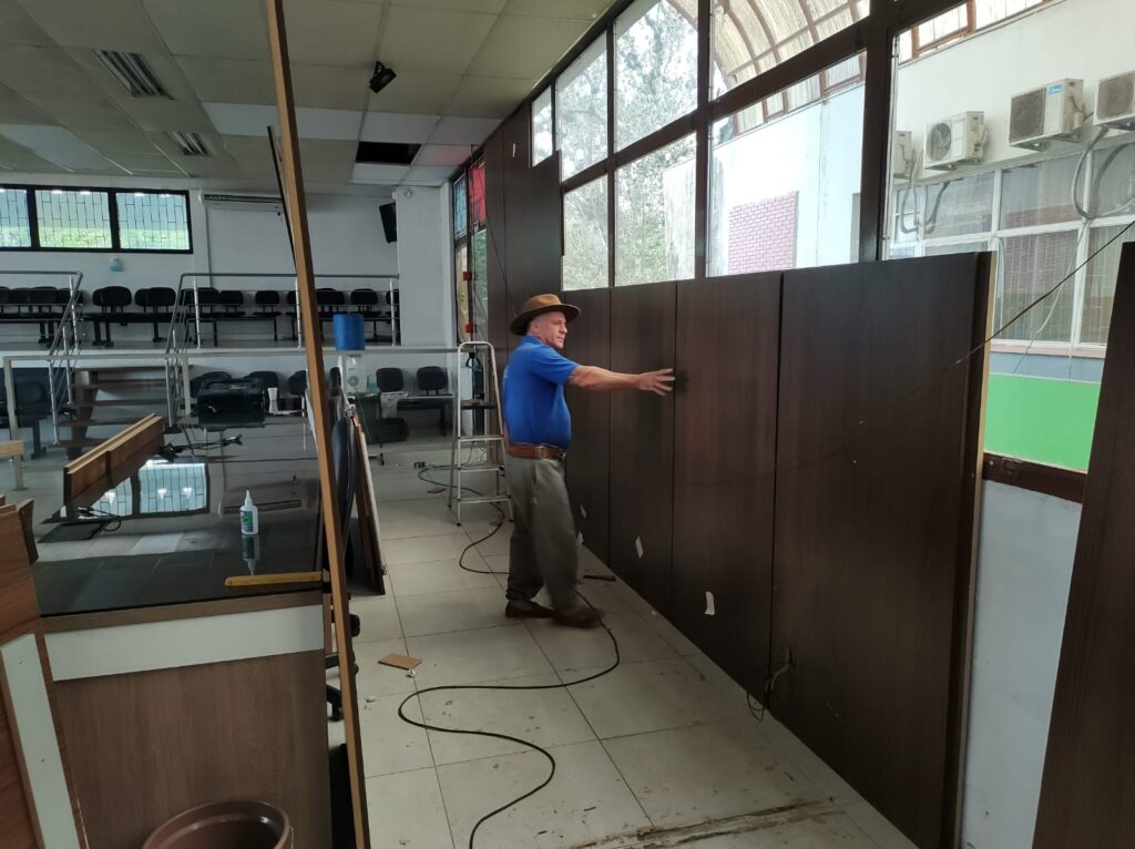 Desde janeiro deste ano, o prédio da Câmara Municipal de Viamão – CMV passa por reformas a fim de promover uma revitalização geral em sua estrutura física, uma vez que o Legislativo viamonense ocupa parte de edificação de propriedade do Poder Executivo Municipal, construção que já possui cerca de 40 anos e que apresenta diversos problemas, além do desgaste em razão do decurso do tempo.