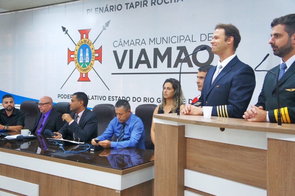 Na sessão plenária da última quinta-feira (20), os pilotos e empresários Ondino Dutra e Márcio Sanchez utilizaram a Tribuna Popular na Câmara, para apresentação do projeto de um Polo Aeronáutico em Viamão, na região de Águas Claras. De acordo com os empresários, o objetivo é atrair investimentos do setor, tais como unidades de comércio, serviços e fábricas do setor, além de incentivar o turismo através de voos panorâmicos, esportes aéreos e um local de convivência. Inclusive já houve a assinatura de um contrato com uma empresa do segmento de serviços aeronáuticos (Drawanz Manutenção de Aeronaves), que deve iniciar sua operação no local, ainda neste ano. Dutra destacou que o Polo Aeronáutico tem potencial de gerar 500 empregos diretos através de um mercado potencial. "O projeto é de grande importância para Viamão, tendo em vista que o município será um dos grandes beneficiados com a geração de emprego e renda para a população", destacou. Para o presidente da Casa, vereador Dilamar de Jesus (PSB), é interesse dos vereadores dar agilidade às pautas que são importantes para o desenvolvimento econômico e social da cidade. O projeto de lei que está sendo finalizado pelo Executivo, e nos próximos dias deverá ser encaminhado à Câmara Municipal para apreciação dos vereadores, institui o Programa de Desenvolvimento do Setor Aeronáutico e de Defesa de Viamão (VIAMAOAERO), que concede incentivos aos empresários que implantarem suas empresas no Polo Aeronáutico em Viamão. O Aeródromo de Viamão já se encontra em operação em Águas Claras e está habilitado para receber aeronaves de pequeno e médio porte, inclusive com operações noturnas. O encontro contou ainda com a participação dos representantes da Secretaria Municipal de Desenvolvimento Econômico, Indústria, Comércio e Turismo, da Prefeitura de Viamão, Anderson Goulart e Alexandra Reis da Silva.