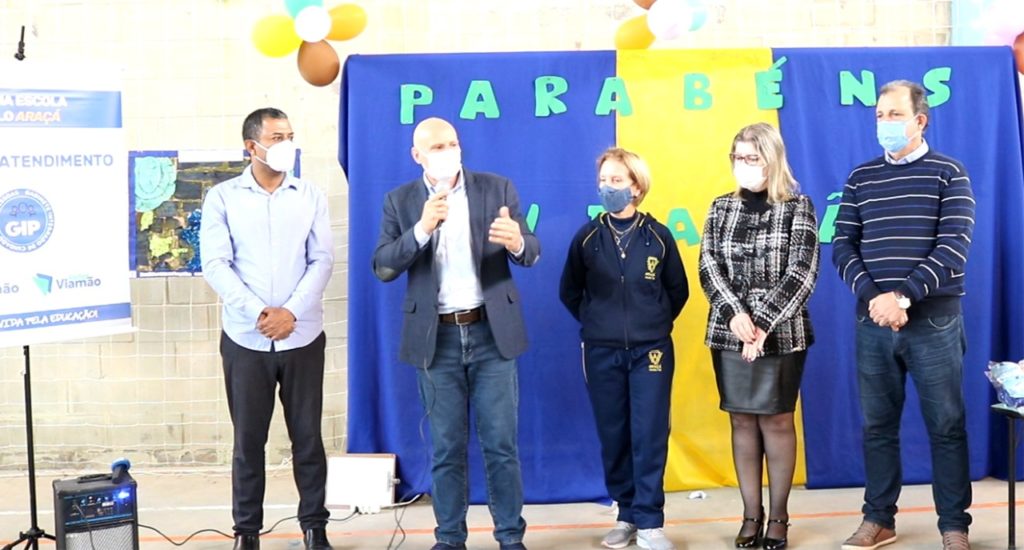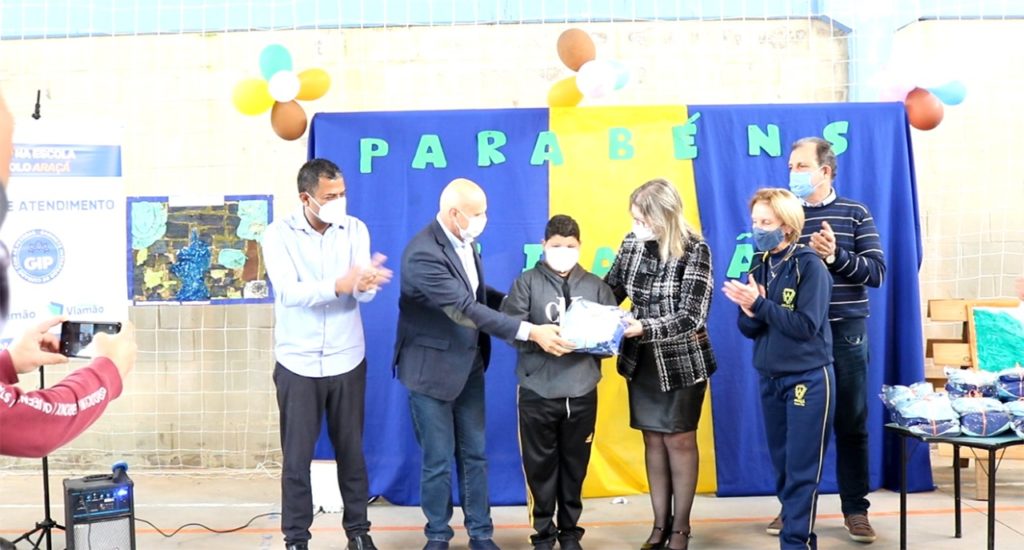 Na Escola Municipal Araçá, e igualmente nas demais escolas de Viamão, foi realizado a 5º edição da entrega de kits de alimentação e também o início das entregas dos uniformes escolares, que serão distribuídos aos cerca de 26 mil alunos, de todas as 62 escolas da rede municipal, contendo para os estudantes de 6º ao 9º anos: camisetas manga curta e manga longa e jaqueta de nylon, e para os estudantes da Educação Infantil e dos 1º ao 5º anos: camisetas manga curta e manga longa, jaqueta de nylon, abrigo completo (calça e casaco com zíper), bermuda (meninos) e legging (meninas).