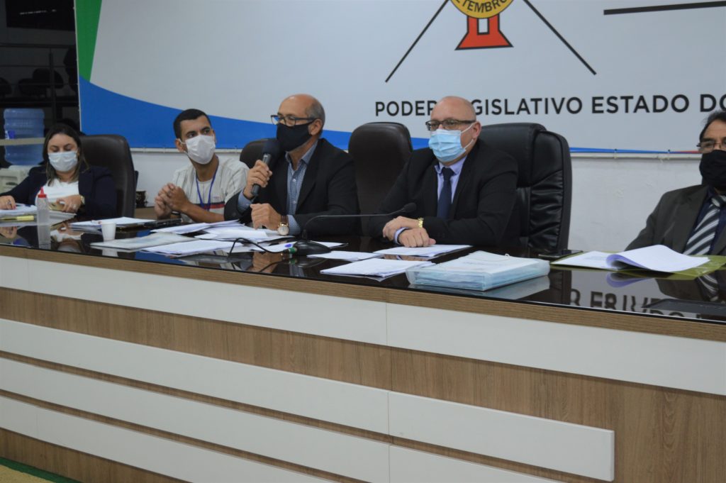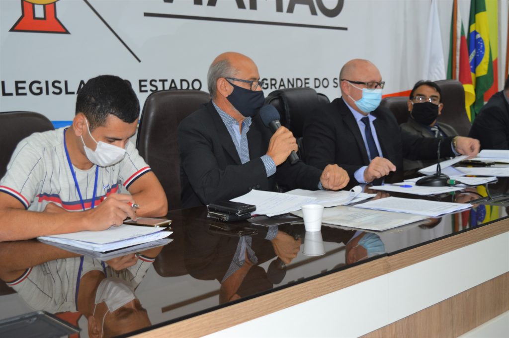 O secretário da Saúde de Viamão, Glazileu Aragonês, participou da sessão desta terça-feira (19), na Câmara Municipal de Viamão – CMV, para prestar esclarecimentos a respeito das ações que estão sendo realizadas pelo município no enfrentamento à pandemia pelo novo coronavírus (COVID-19), questionadas pelos parlamentares. Além do secretário, também estiveram presentes a secretária de Saúde adjunta Thais Schadeck, o diretor do Departamento de Vigilância em Saúde, Clayton Ferreira, e o secretário da Fazenda, Cristiano Bernardes. A convocação do secretário da Saúde da cidade foi requerida pelo vereador André Gutierres – Progressistas e aprovada pela Câmara.