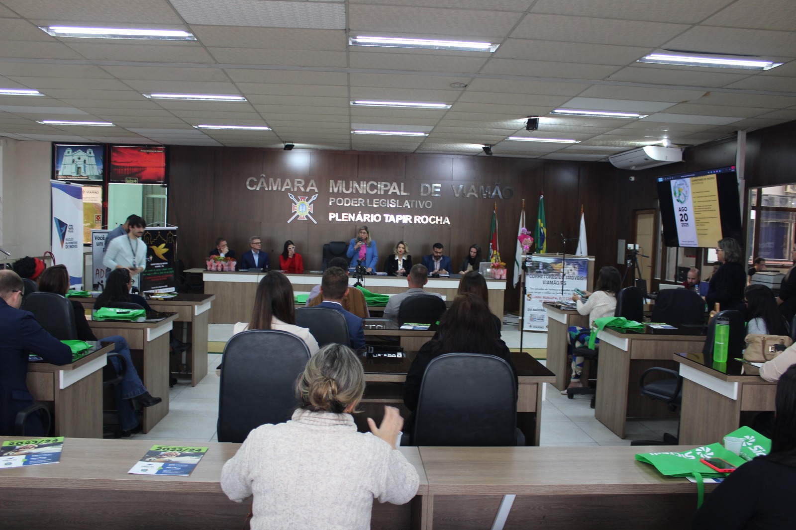 Na tarde da última quarta-feira (20), a Câmara Municipal de Viamão - CMV promoveu uma sessão solene em comemoração à 5ª Semana Municipal dos Corretores de Imóveis. A cerimônia ocorreu no plenário Tapir Rocha e reuniu autoridades, profissionais do setor e convidados. A Semana Municipal foi criada com o intuito de reconhecer e enaltecer a atuação dos corretores de imóveis, fundamentais para o crescimento econômico, social e urbano da cidade.