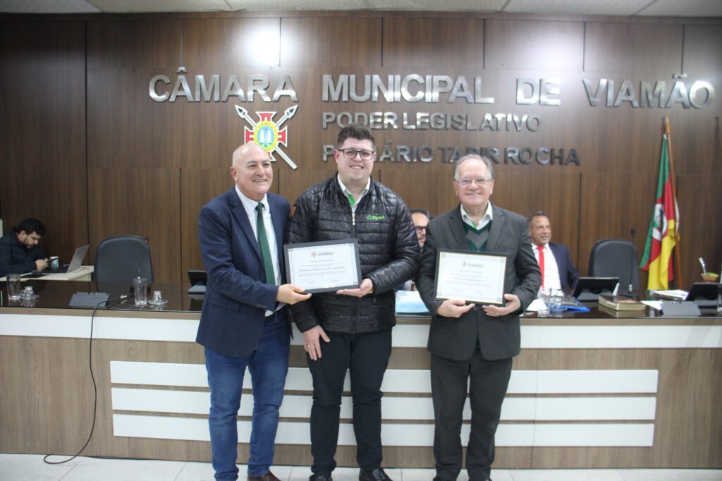 Dilamar de Jesus entregou diploma de parabenização para o Sicredi do Centro de Viamão e Águas Claras. O vereador Plínio Konig – PSDB, por sua vez, entregou o certificado para a região da Santa Isabel, e o Sicredi Origens recebeu a honraria das mãos do vereador Leandro Bonatto – PSDB. “O Sicredi Origens RS, que hoje é a união de diversas cooperativas, celebra seus 100 anos com diversas atividades em diferentes municípios. A comemoração do centenário é uma oportunidade para reconhecer a importância do Sicredi Origens RS na história da região, bem como para celebrar a parceria com cooperados, colaboradores e a sociedade em geral”, fala o vereador Dilamar.