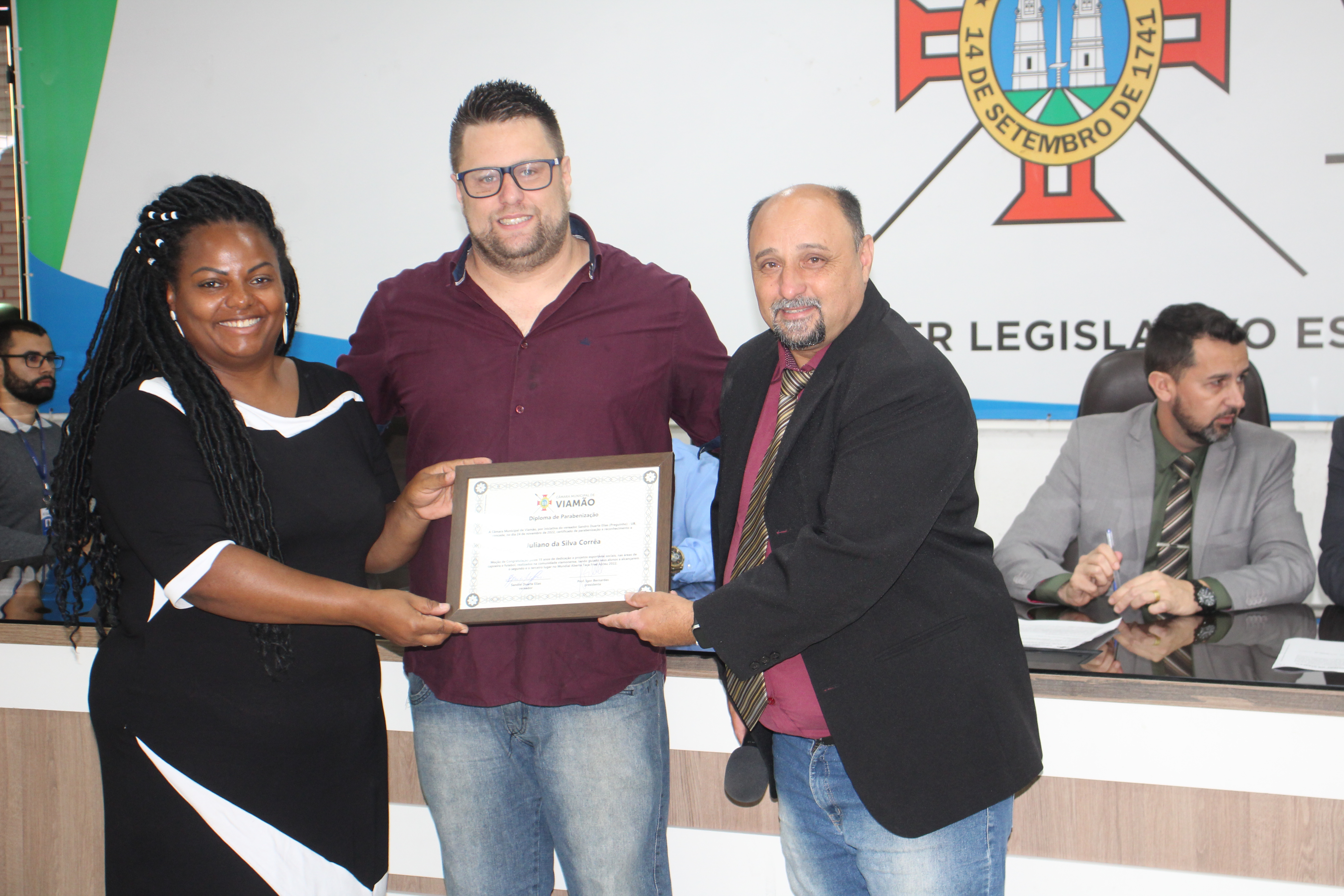 Na sessão plenária desta terça-feira (29), o vereador Sandro Elias (Preguinho) – União Brasil entregou diploma de parabenização para o treinador e professor de capoeira Juliano da Silva Corrêa, conhecido como Xuxa, pela conquista no Mundial Aberto Taça Fred Abreu. Xuxa destacou que um de seus alunos foi vice-campeão mundial e outro ficou em terceiro lugar. “São importantes conquistas. Por isso, precisamos olhar mais para nossas comunidades. O esporte me salvou e tem grande importância na sociedade”, enfatizou.