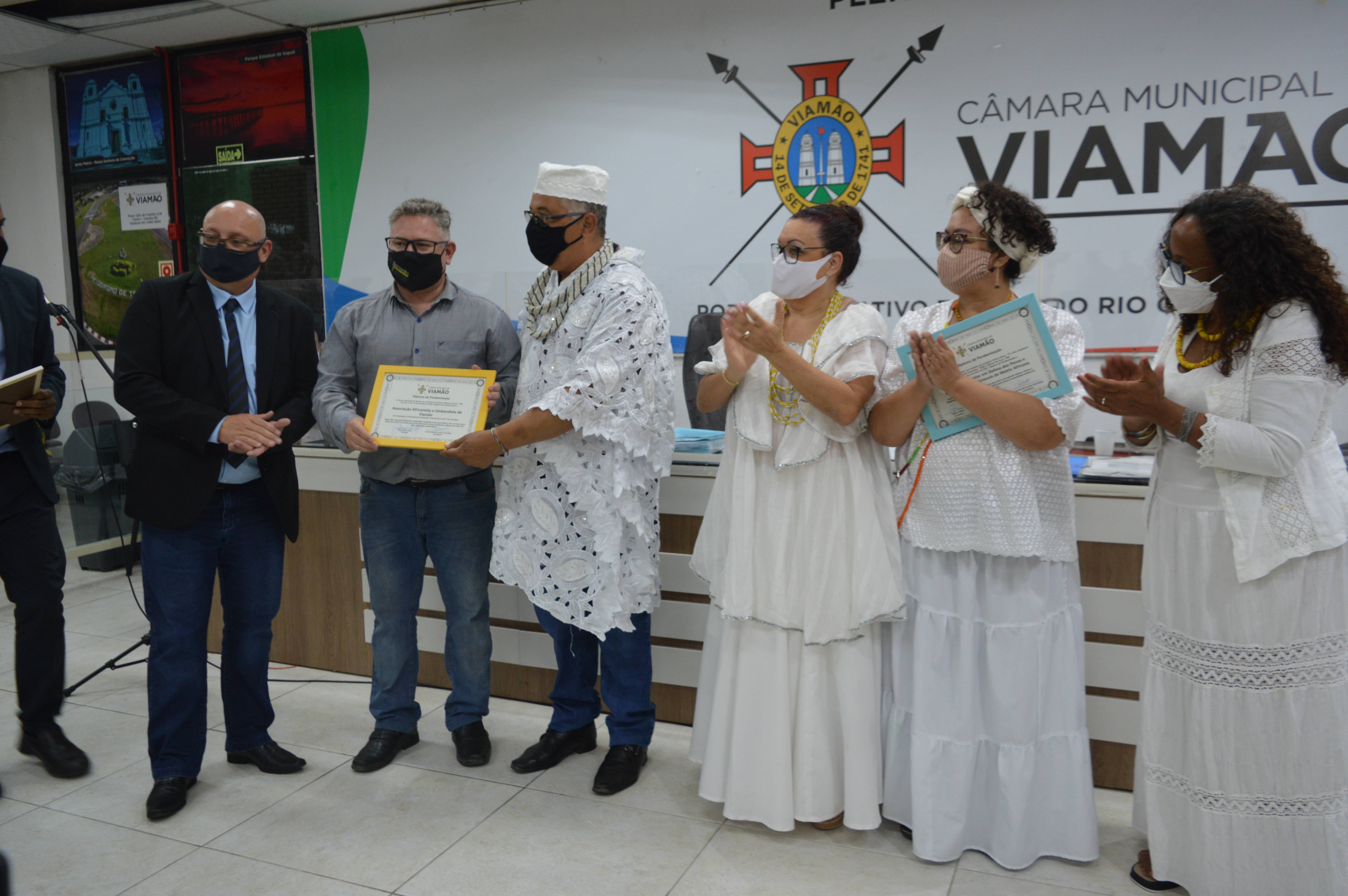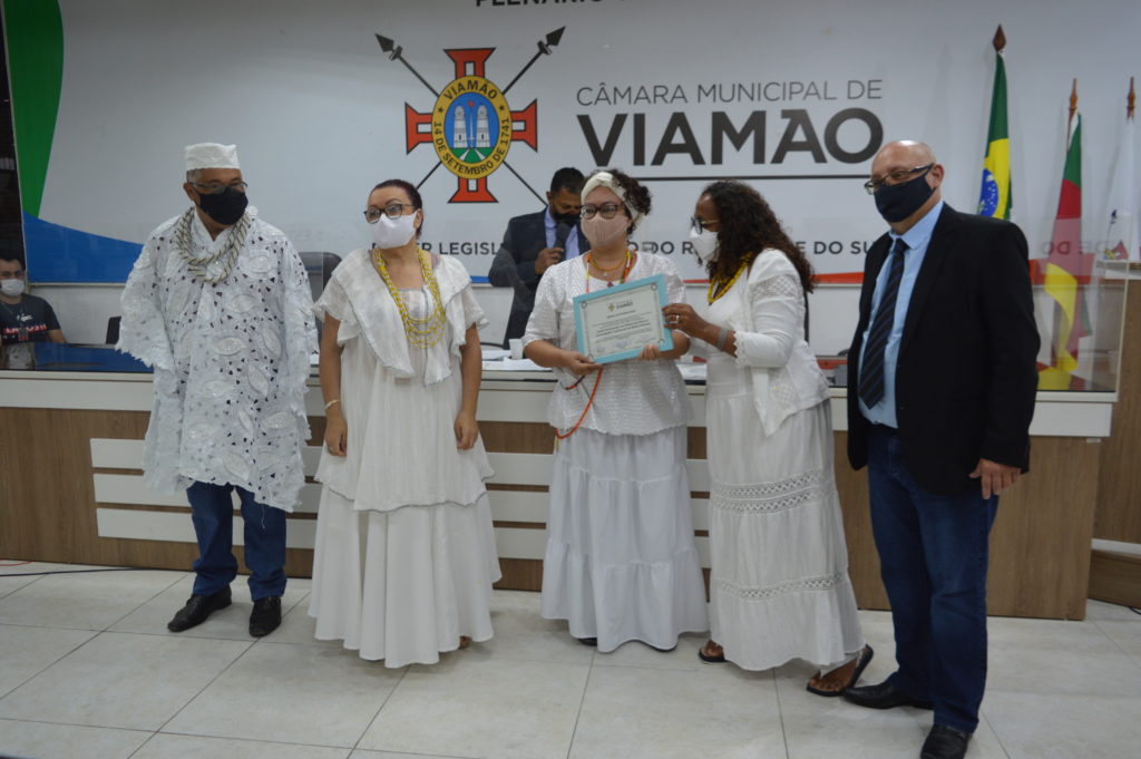 O vereador Dilamar de Jesus – PSB entregou diploma de parabenização para Frente Parlamentar em Defesa dos Povos e Comunidades Tradicionais de Matriz Africana, referente ao dia Nacional da Umbanda comemorado no dia 15 de novembro, que neste ano completa 113 anos e ao Templo Religioso Sociedade de Umbanda e Religião Africana Filhos de Oxum-Surafo, que desde 1998 está em atuação, o ato aconteceu na sessão plenária desta terça-feira (16), e esse último, foi subscrito pela vereadora Fátima Maria – PT e pelo vereador presidente, Luís Armando Azambuja – PSDB.