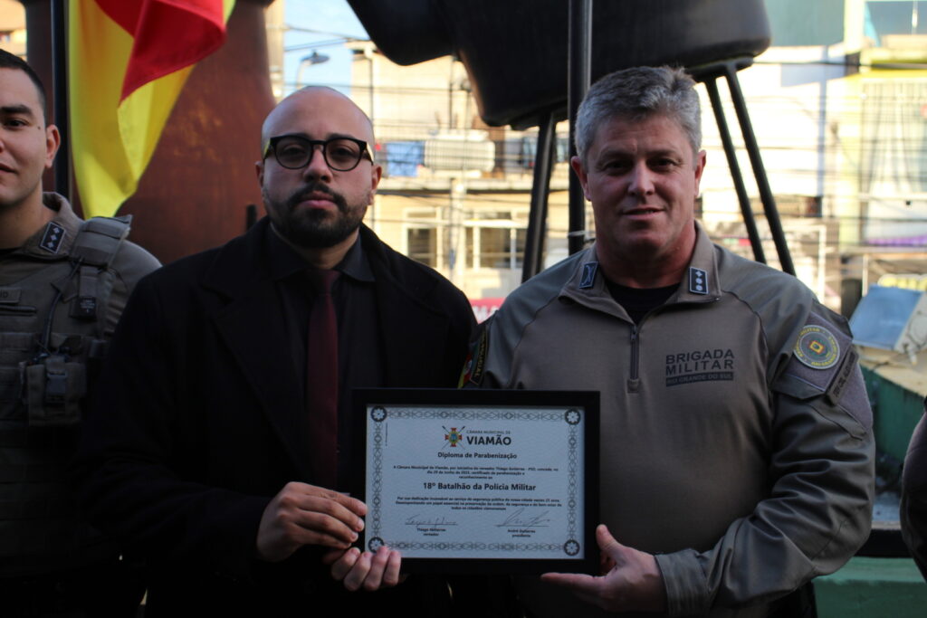 “Com muita alegria prestamos esta homenagem, e não somente por ser o presidente da Comissão de Segurança Pública aqui no Legislativo, mas por entender a importância da Polícia Militar, que traz a ordem, o bem-estar e a segurança para os nossos viamonenses. Quando o povo sente-se seguro, ele consegue trabalhar, produzir e prosperar” pontuou o parlamentar.
