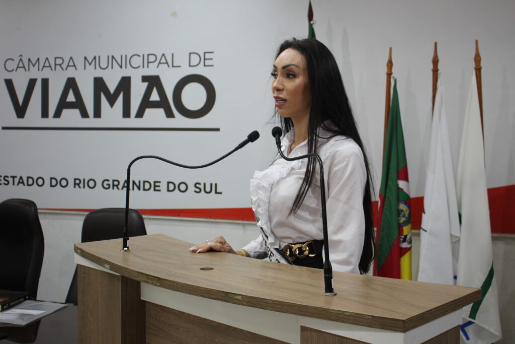 Na sessão plenária desta terça-feira (13), a vereadora Denise Guedes, integrante da bancada do PSDB, realizou uma homenagem à Miss Universo Trans e Rainha Trans da Escola de Samba Vila Isabel de Viamão, Luanna Isabelly Moreira da Silva.