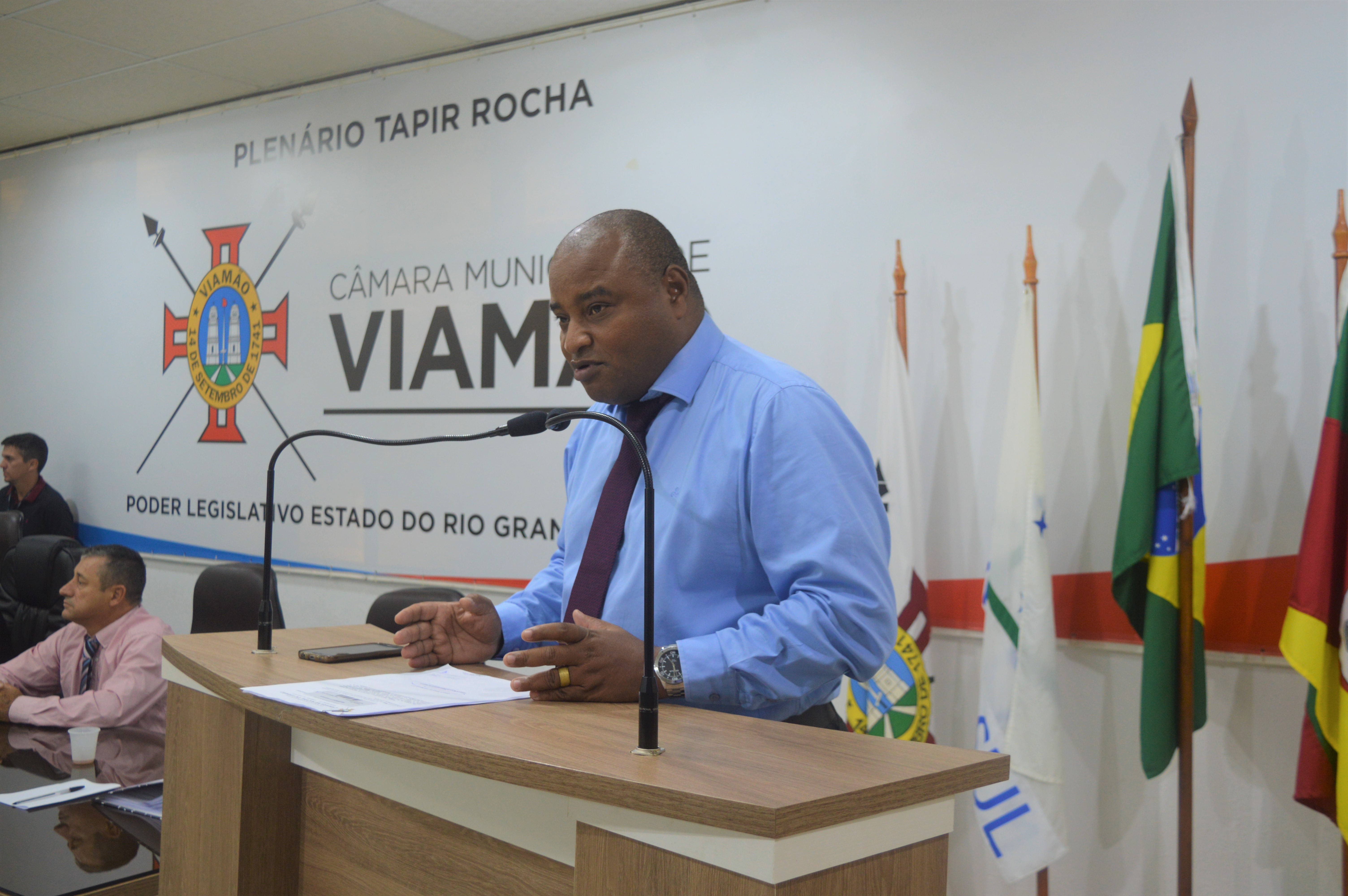 O vereador Xandão Gomes – PRB entregou moção de apoio à Associação de Bombeiros do Estado do Rio Grande do Sul – ABERGS, na sessão desta quinta-feira (28), na Câmara Municipal de Viamão – CMV.