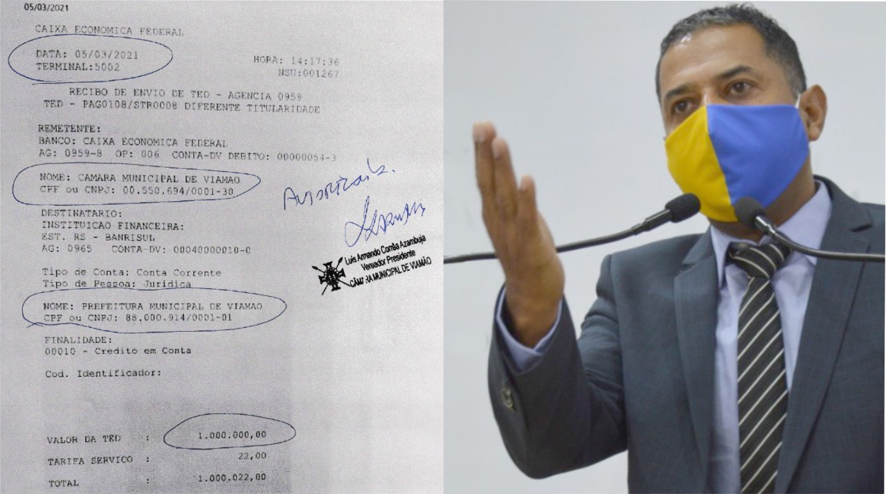 • Presidente da Câmara de Viamão transfere R$ 1 milhão de reais à prefeitura para o combate à Covid-19