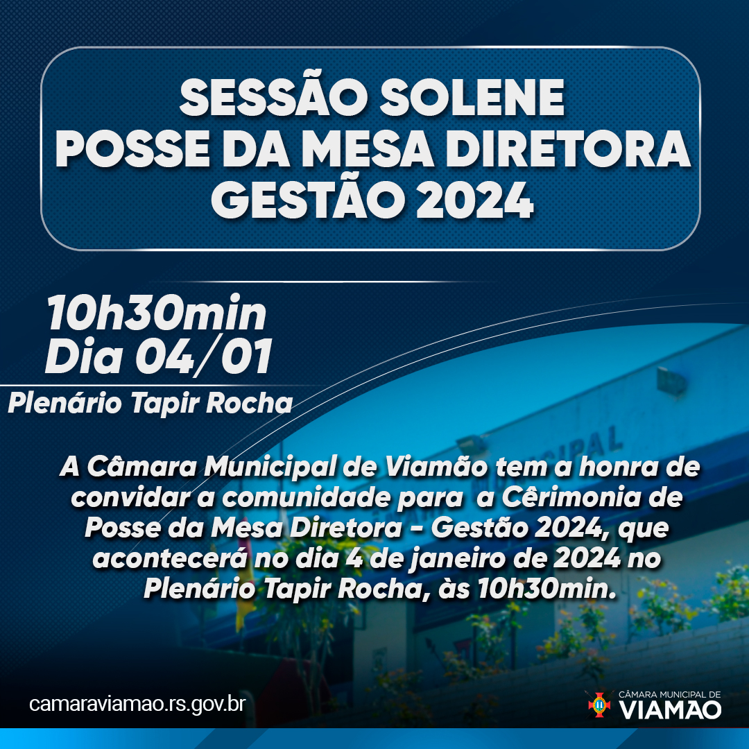 • Posse da Mesa Diretora 2024 será na próxima quinta-feira (4)