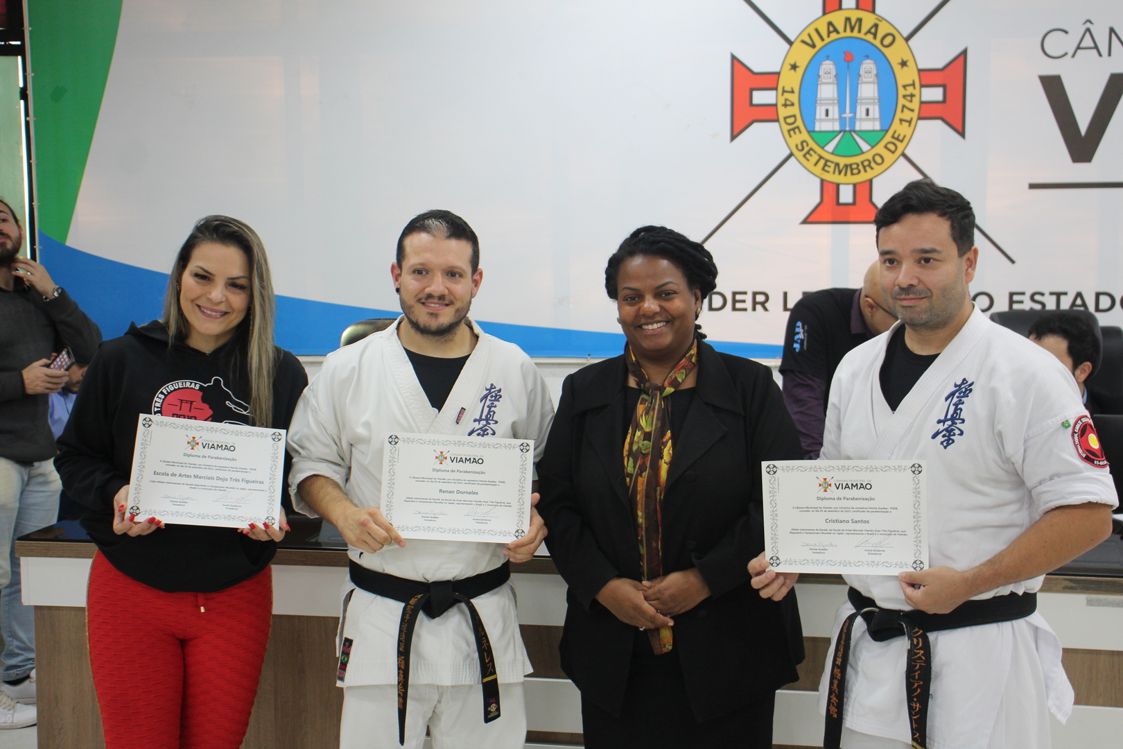 • Denise Guedes entrega diploma de parabenização aos atletas da Escola de Artes Marciais Dojo Três Figueiras