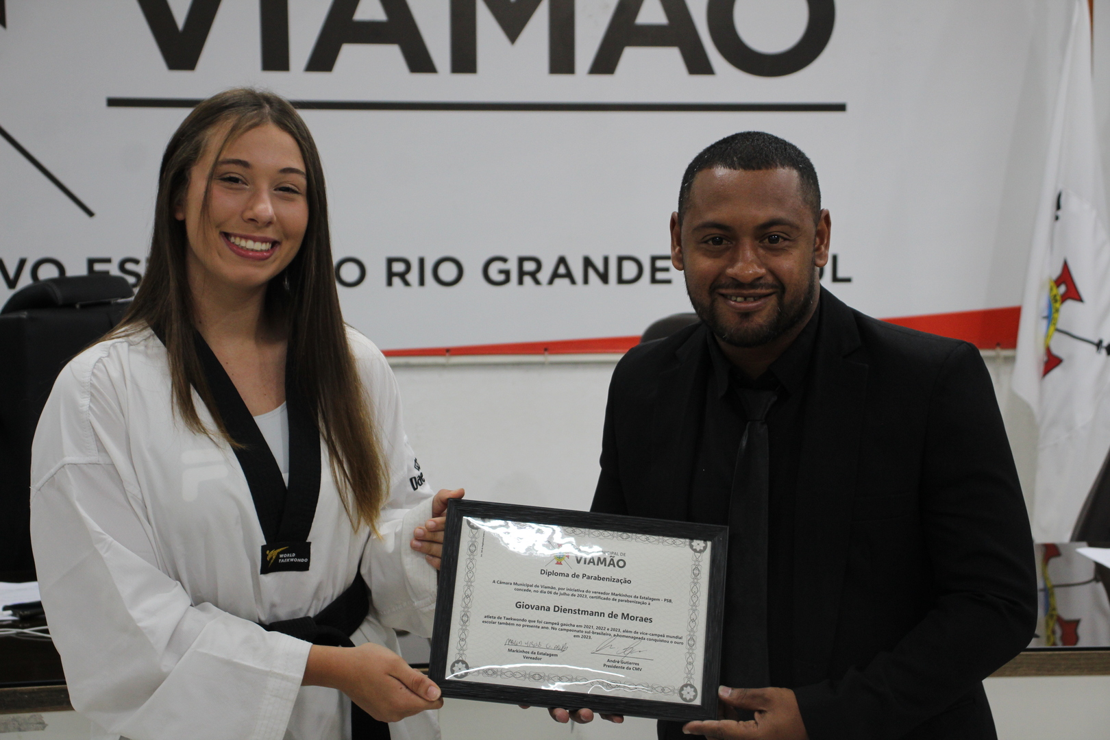 • Markinhos da Estalagem entrega diploma de parabenização a atleta de Taekwondo