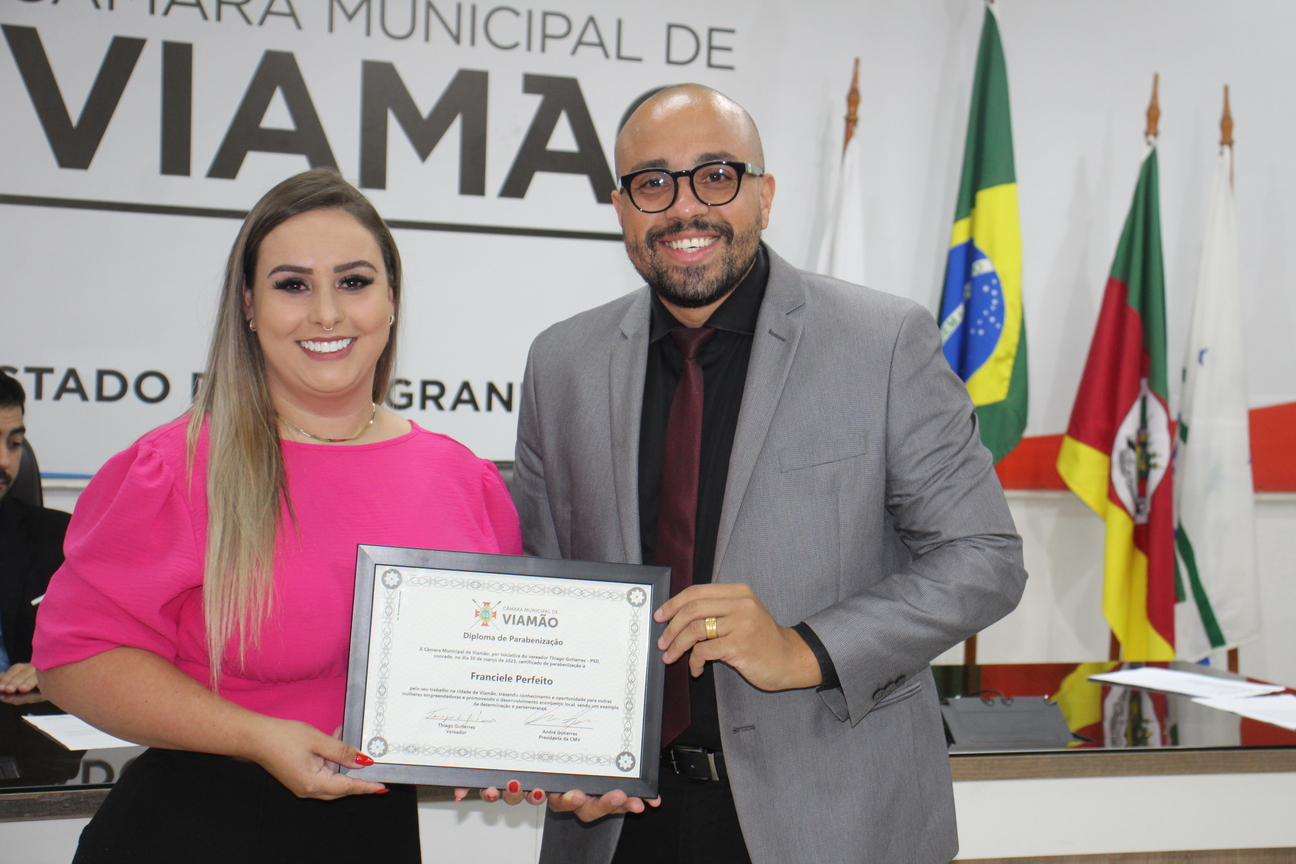 • Empreendedora viamonense Franciele Perfeito recebe homenagens no Plenário Tapir Rocha