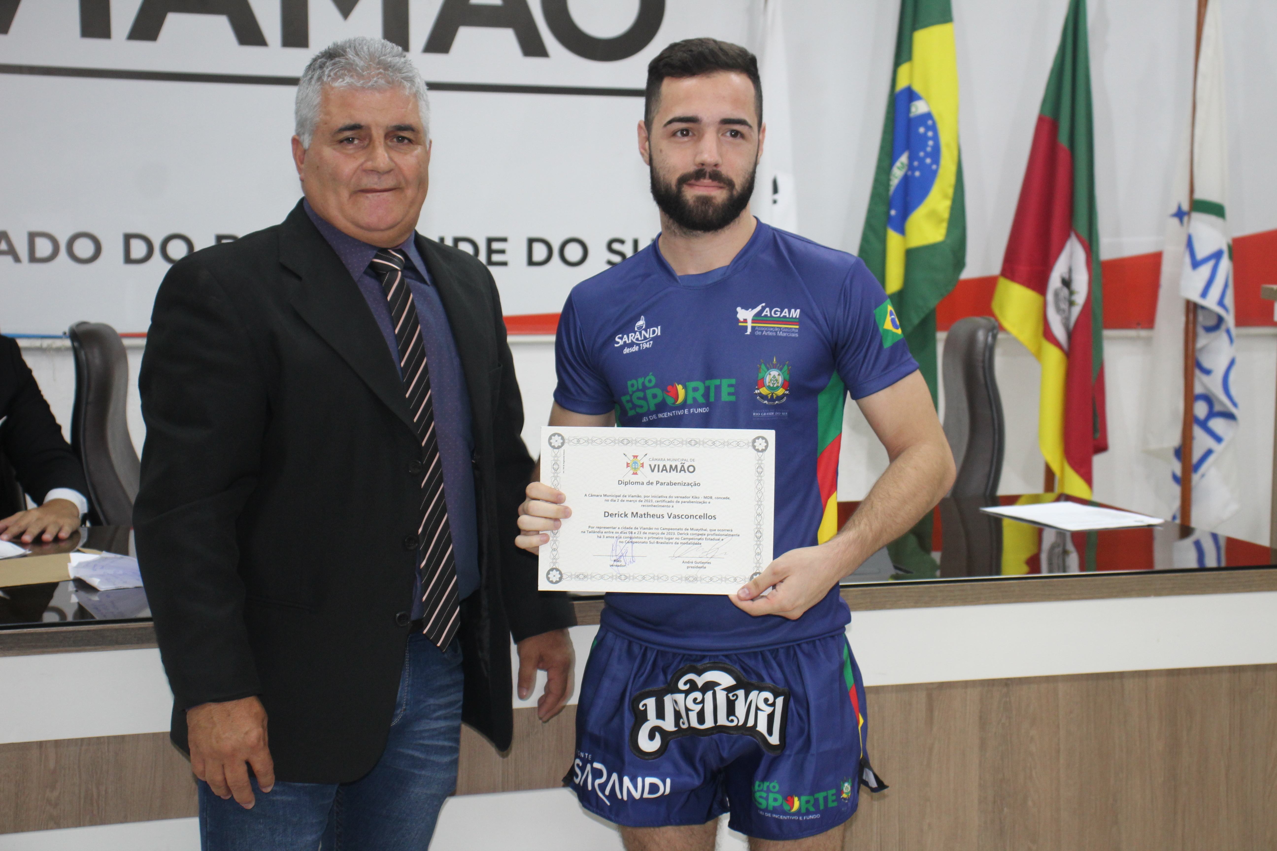 • Vereador Kiko entrega diploma de parabenização para atleta de Muay Thai