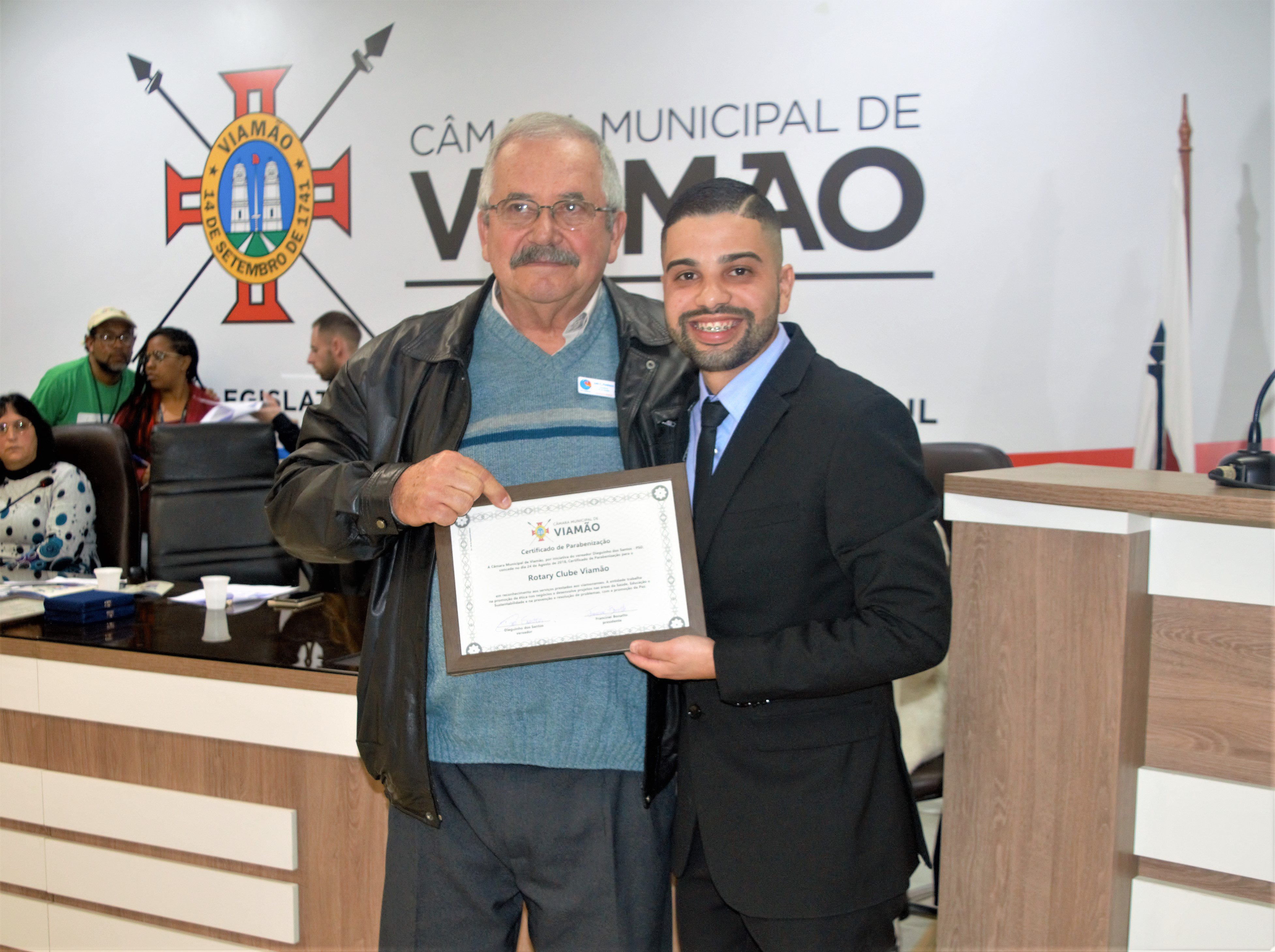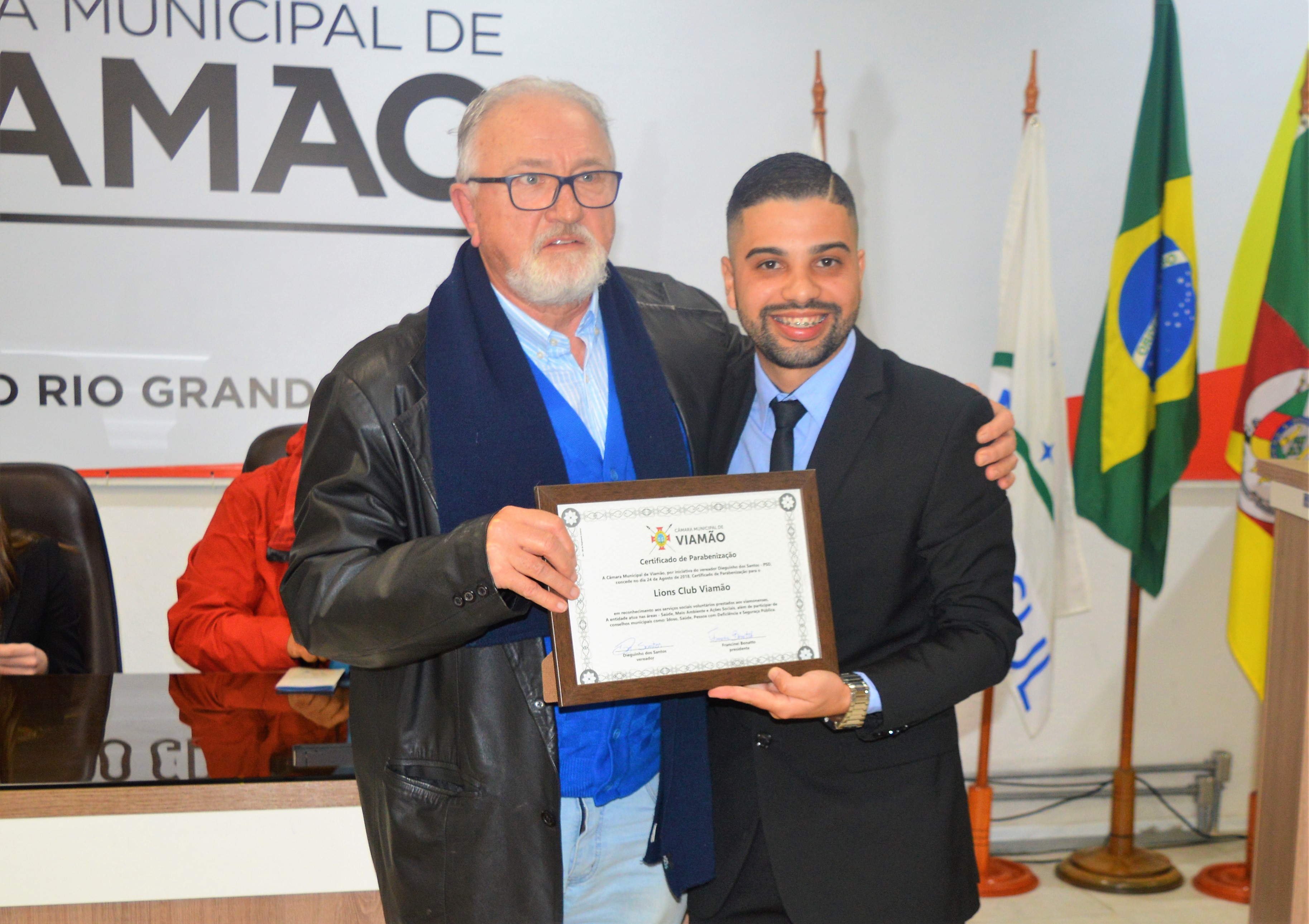 Durante a sessão, o vereador Dieguinho dos Santos entregou certificado de reconhecimento ao Rotary Clube Viamão e ao Lions Club Viamão pelo desenvolvimento de trabalhos sociais.